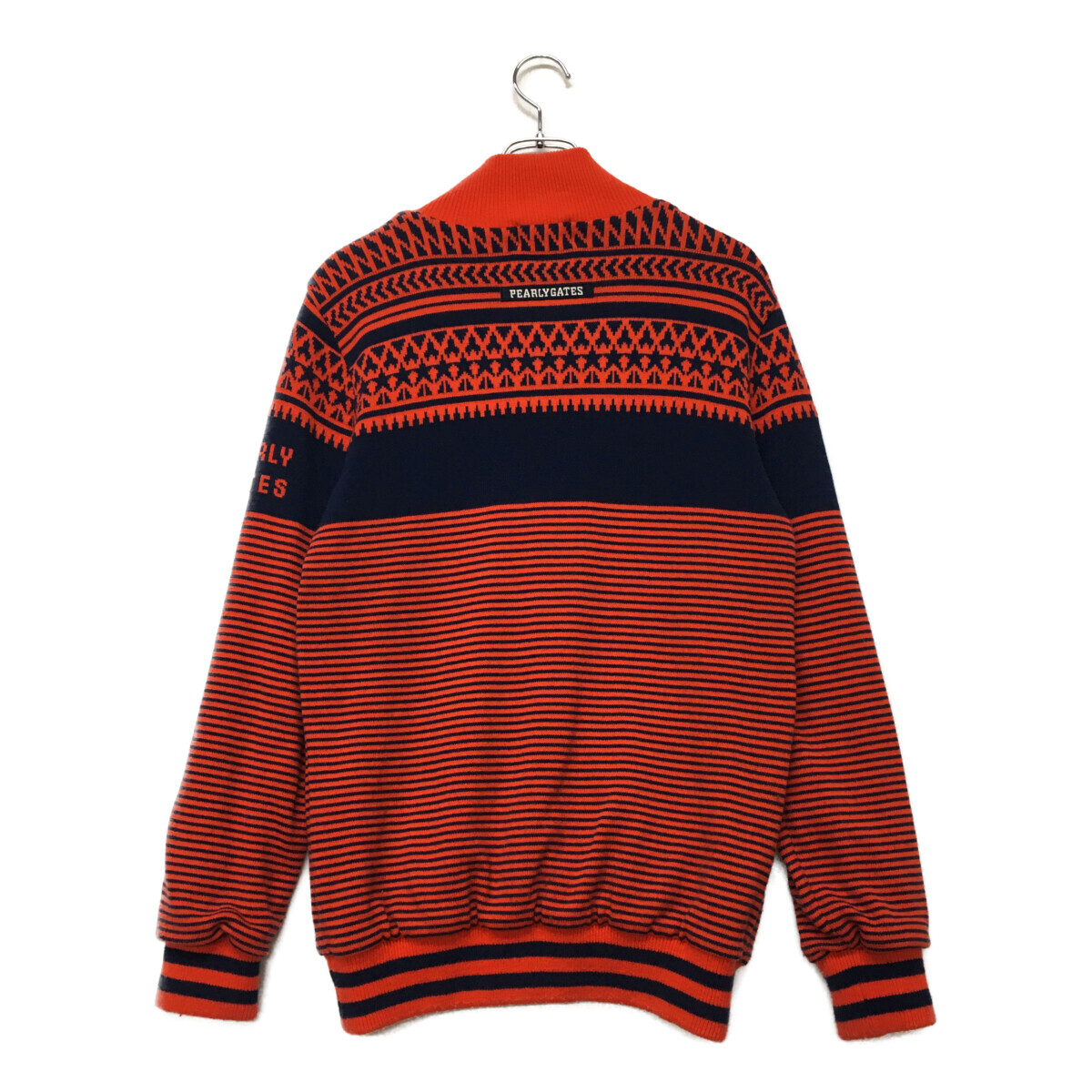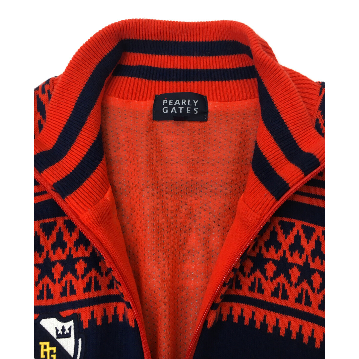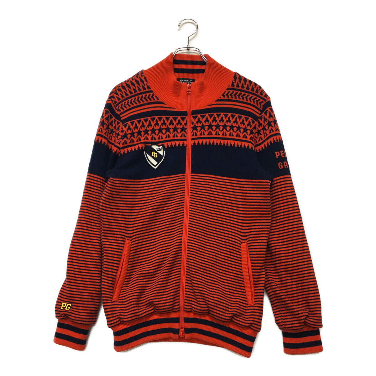 coco 中古【値下げ】パーリーゲイツ メンズ ニットアウター 4(M) 赤 レッド ボーダー ダブルジップ 裏地付き 防寒 97342