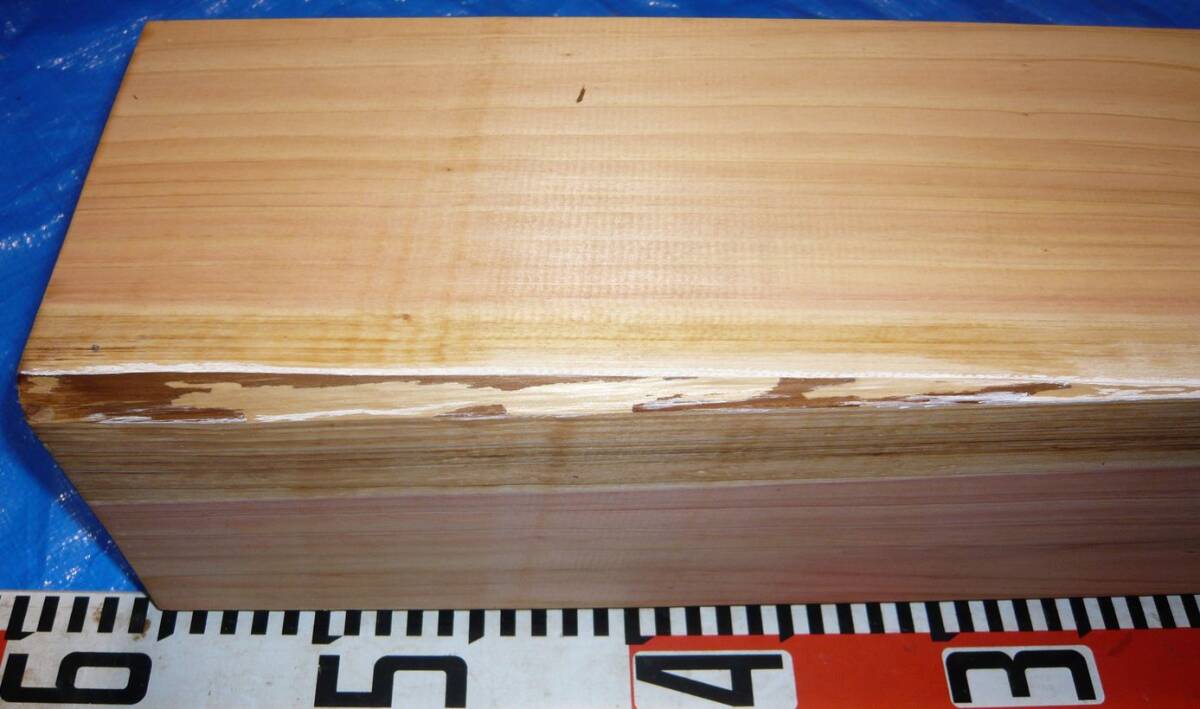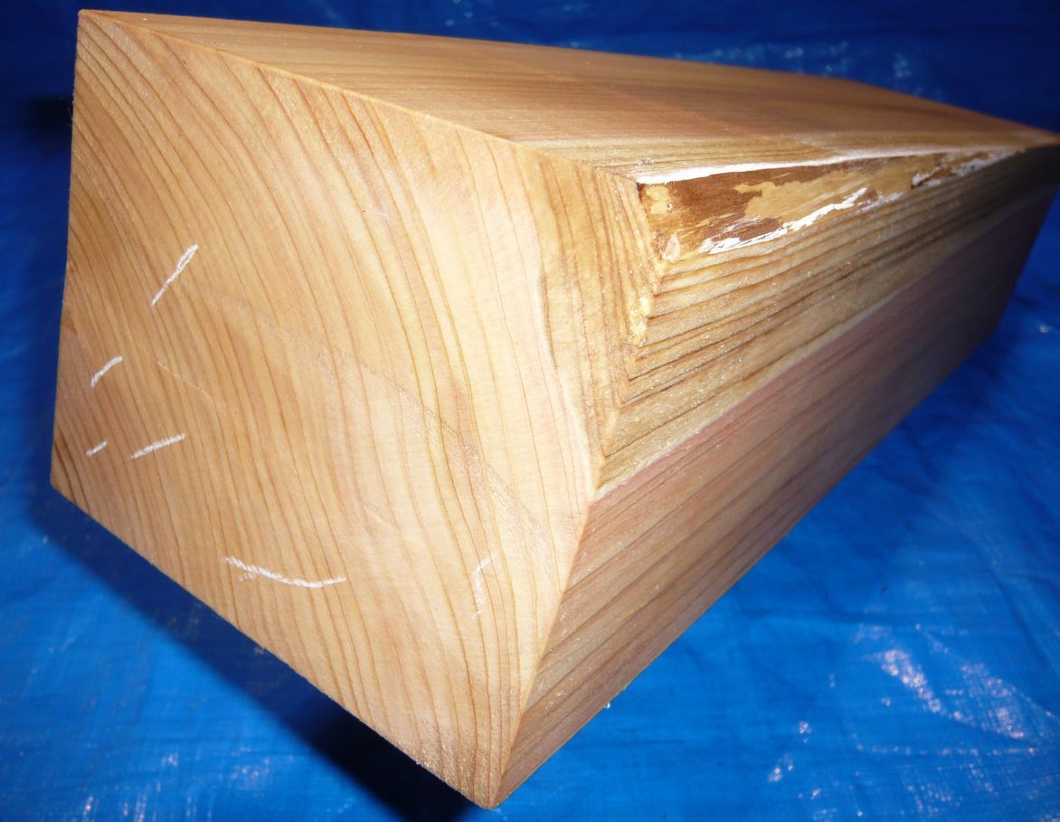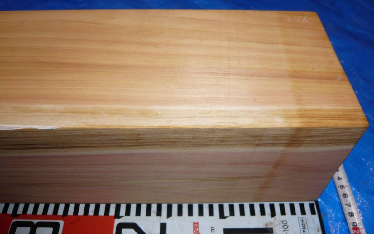 ★翌桧 角★アスナロ 薄ピンク色・厚120mm 彫刻 器 漆器 木彫り 旋盤【276】良質材★ ●サイズ● 長さ540mm・幅145mm・厚120mm・・★ (多少の誤差が在る場合が有ります.) ●状態● 傷・木口割れ・腐り部分・シミ部分・鉋傷(逆目・段差)が在ります。 4面プレーナーに通してありますが、刃こぼれ跡のライン・傷が在るかも?。 (プレナー加工は反り落とし、厚みだしですので刃の状態、木肌の質により逆目や毛羽立ちなどはございます。) 木目を見るために水で濡らして撮影しています。 乾燥3年材・画像を良くご覧下さい。 ●注意事項● ◆◆当店の出品は完成品では有りませんので、木工用・DIY材料としてお使いください。◆◆ 割れ・節・傷・汚れ・反り・虫食い跡・サカメ・プレナーの段付き等ありますので、 サンダー等で仕上げる前提でお願いいたします。 メジャー・定規は商品ではありません。 無垢材ですので傷・割れ・穴・虫穴・反り・捻じれ・変色・カビ・等がで在る事が在ります。 神経質な方の入札は、絶対にお断りします。 木目を見るために水で濡らして撮影しています。 ◆◆発送は出来るだけまとめて発送しますが、商品代金のお支払いは個別でお願いします。◆◆ オークション終了日より3日以内に連絡を頂ける方でお願いします。 3日以内までに連絡頂け無い場合は購入意志が無いと判断し 次点繰上げを行いますのでご了承ください。 その際にシステム上非常に悪いの評価が付くことはご理解ください。 ■送料について■ ・送料は元払い限定(着払いは対応していません)。 ***ヤマト便で発送致します。*** (100サイズで) **複数落札いただくと送料が割安になります (25kgまでは1個で発送いたします。) ***ご入金確認後、ただちに発送いたします。 ◆◆注意事項 ヤフーの落札メールにコメントがあります。◆◆ 当社の【URL】https://r.goope.jp/woodluck-suzuki