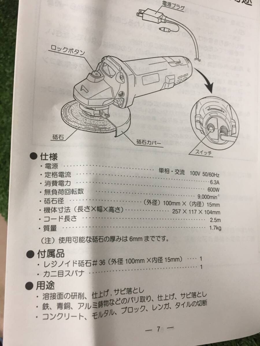 【未使用】RYOBI ディスクグラインダ G-1010H /IT8ZI14ZOE80