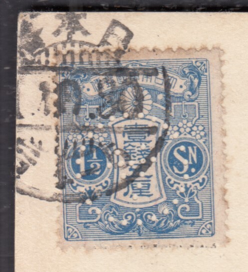 穿孔成瀬省一商店 旧大毛1.5銭貼葉書