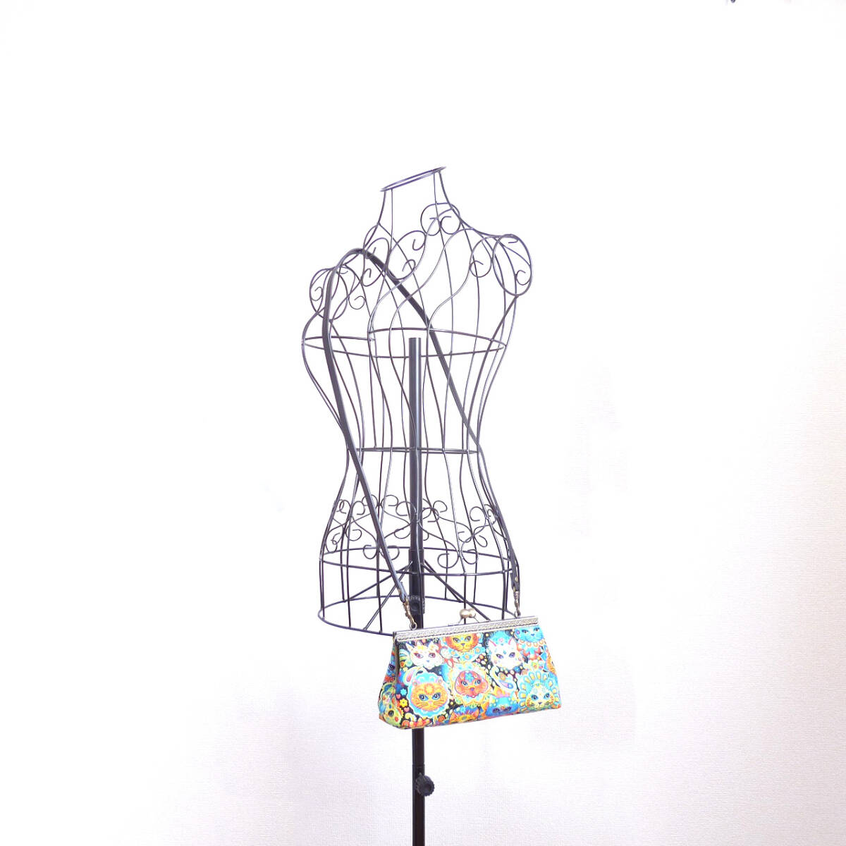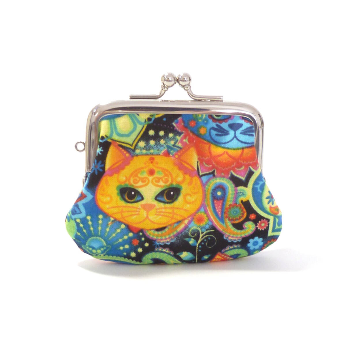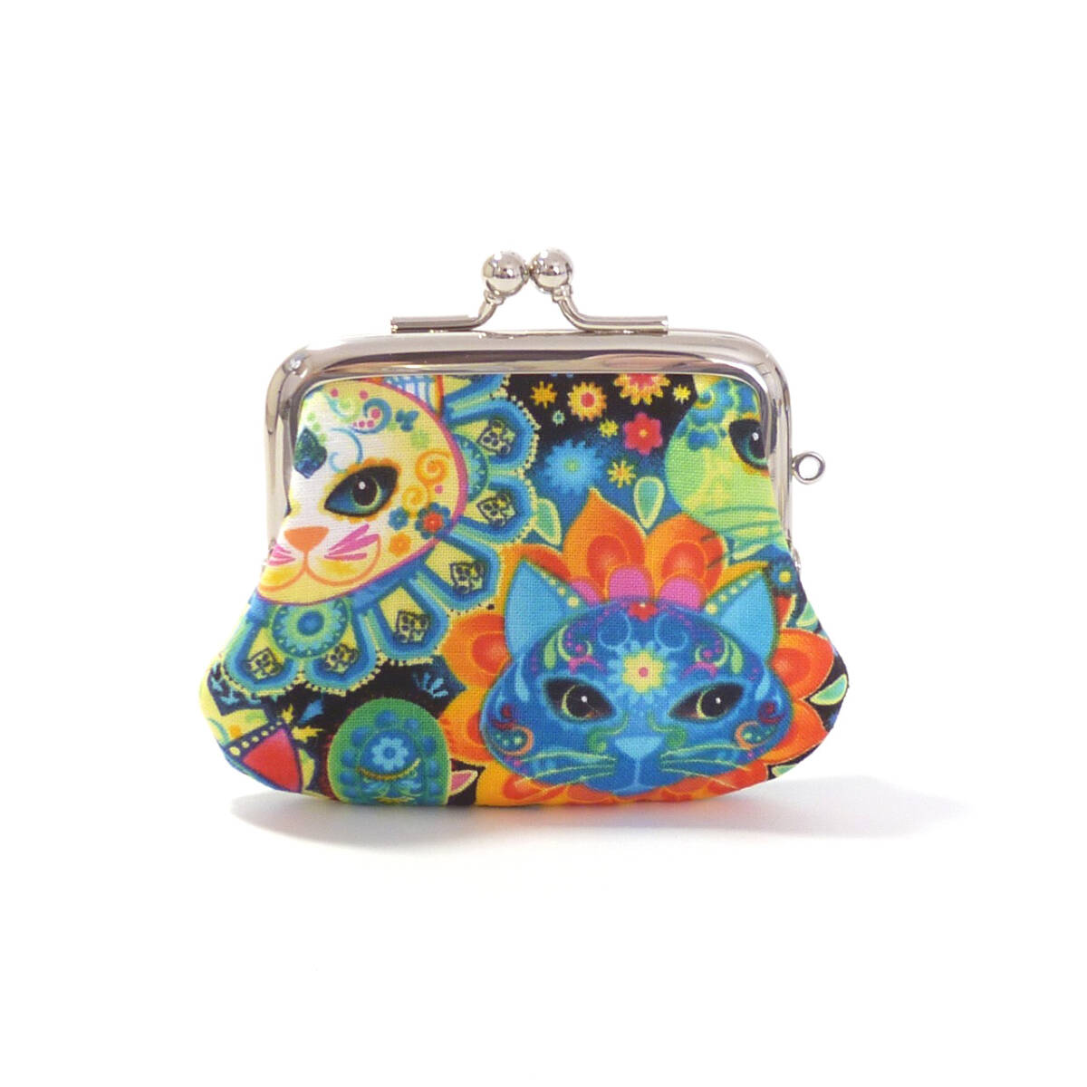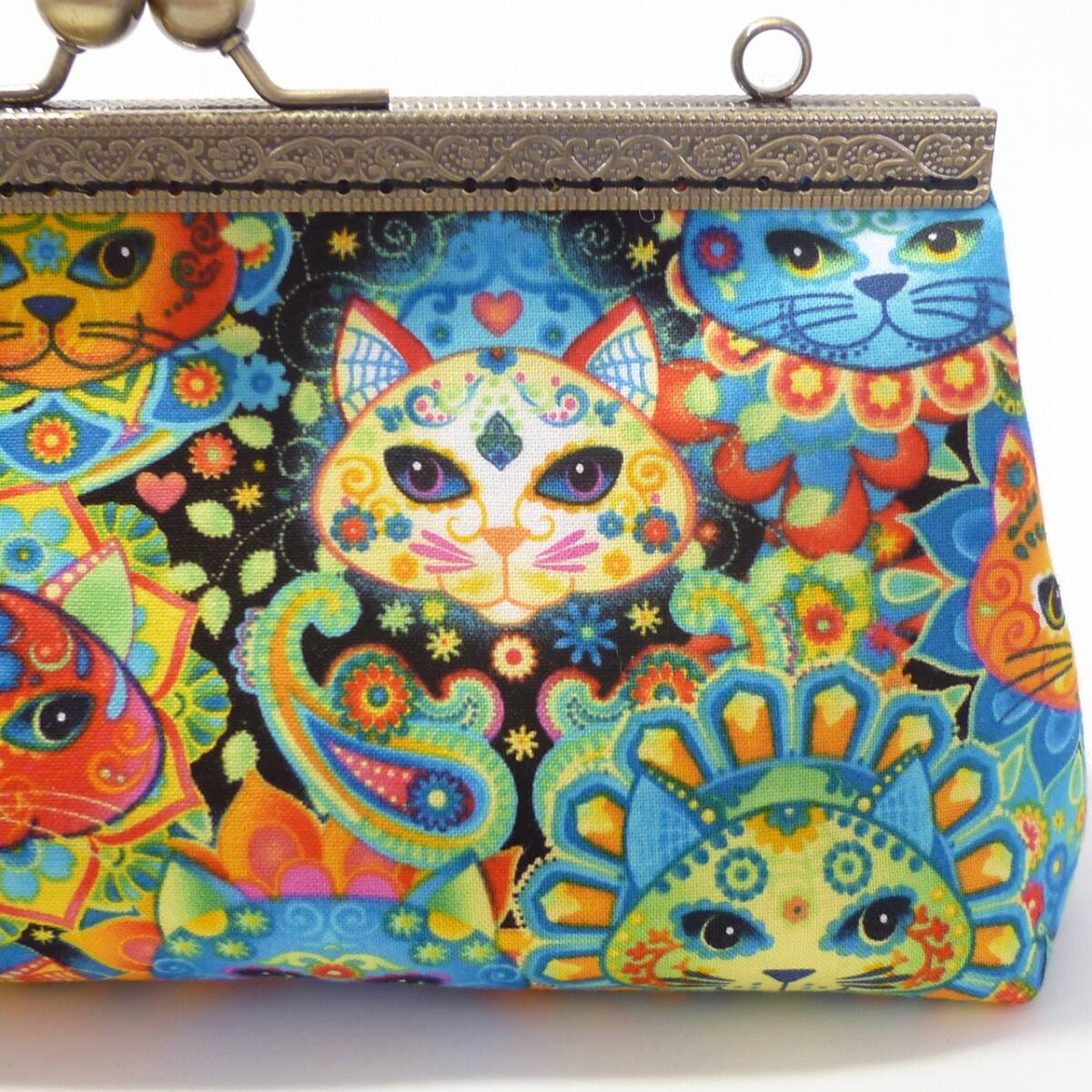 セット商品★がま口ショルダーバッグ&小銭入れ メキシコの伝統柄風 猫柄 ネコ ハンドメイド G376