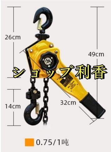 レバーホイスト レバーブロック G80マンガン鋼製 定格荷重0.75t 標準揚程1.5m 手動式 荷締め 運搬用 運送