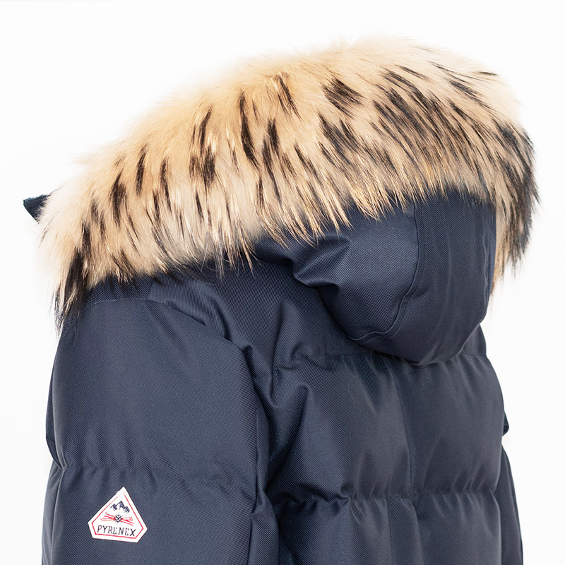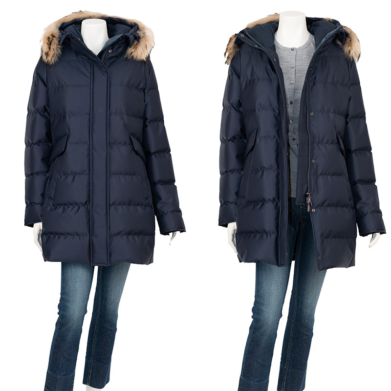 フード廻りのフィンラクーンのファーは繊細ながらボリュームがあり、ファスナーで取り外すことが可能。