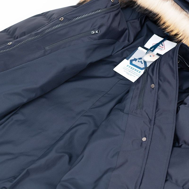 アンダータブつき、ピレネックスロゴ入りダブルジップ上下スライダーフロントジッパー /