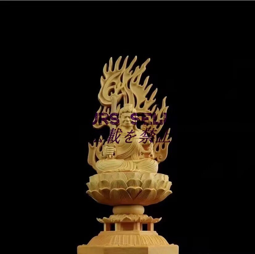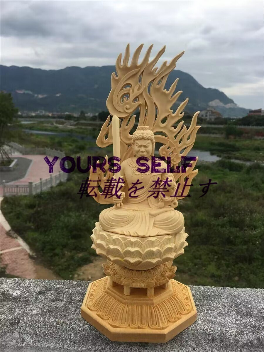 新作 木彫仏像 不動明王 仏像 座像 蓮華丸台座 精密細工 仏師で仕上げ品