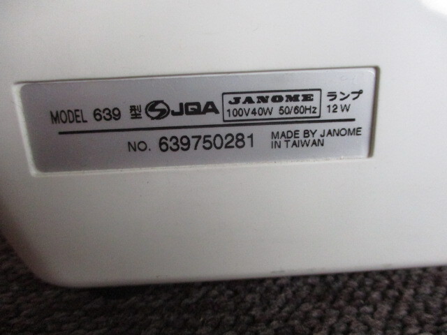 ミシン 中古 ジャノメミシン 639 639型 JCM N-105 コンパクト 佐川100サイズ JANOME 以下検索用 裁縫 編み物