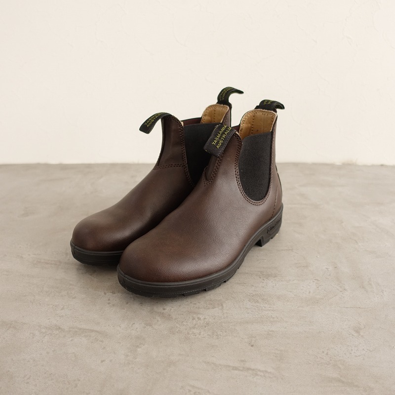 | BLUNDSTONEのサイドゴアショートブーツです。カラーはダークブラウンで、レザー素材です。履き口の両サイドがゴム仕様で、前後にはプルストラップ付きです。インソールは取り外しが可能です。定価(メーカー希望小売価格)31,900円の商品です。 |