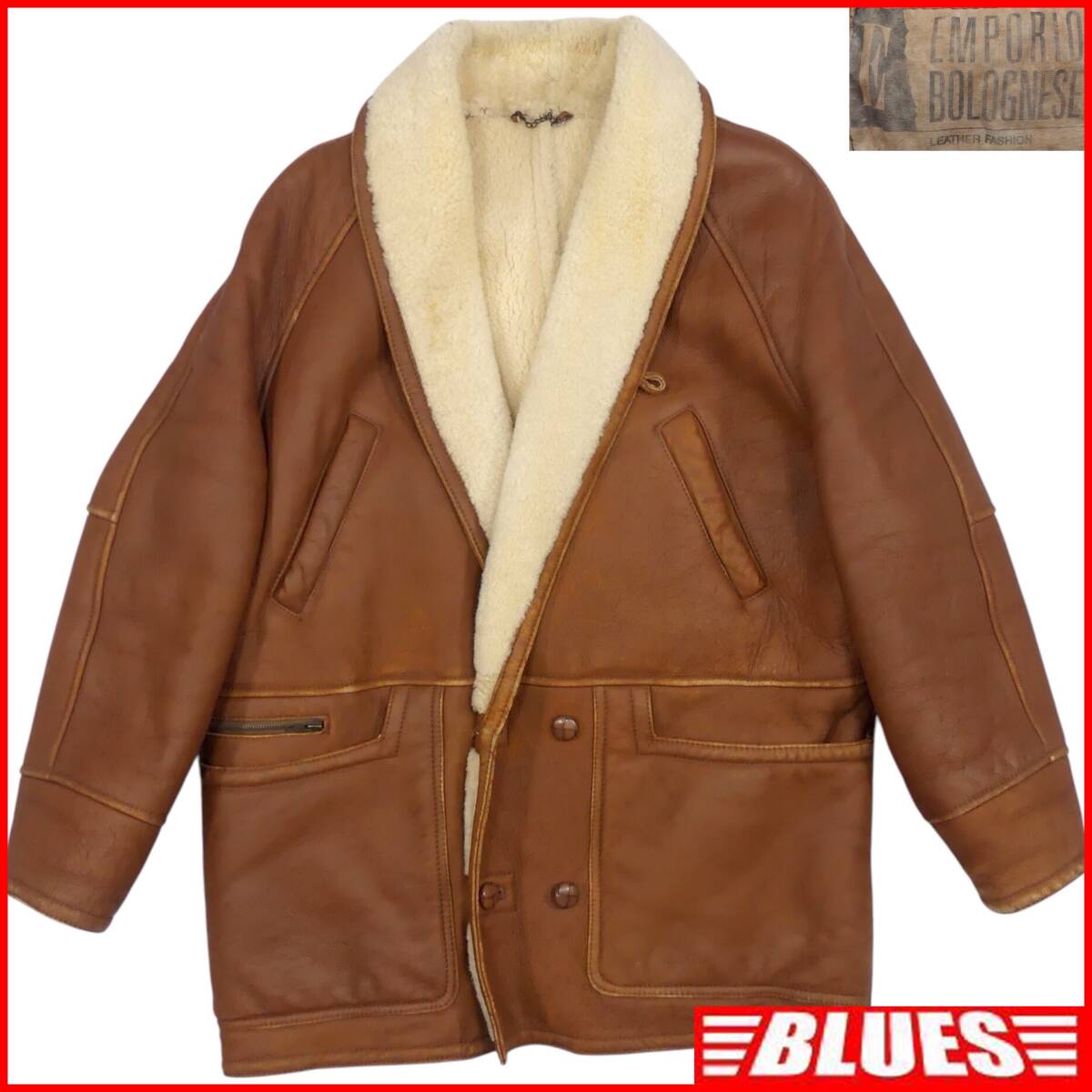 即決★EMPORIO BOLOGNESE★メンズ XL ムートンコート エンポリオボログネーゼ 56 茶 本革 レザー ジャケット 羊革 ラム 検索:B3