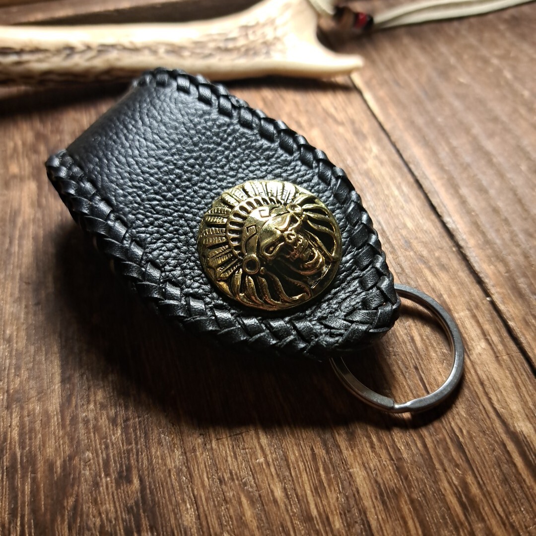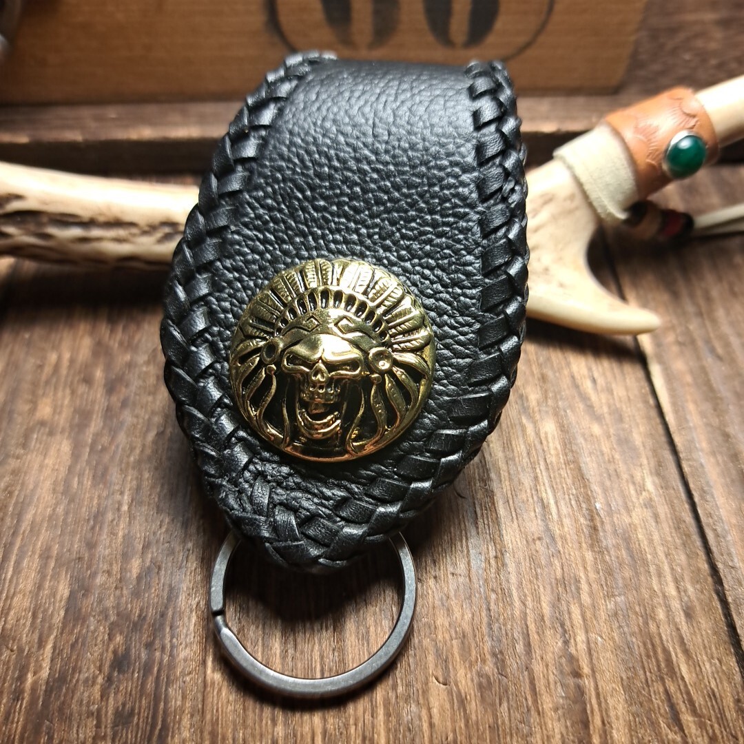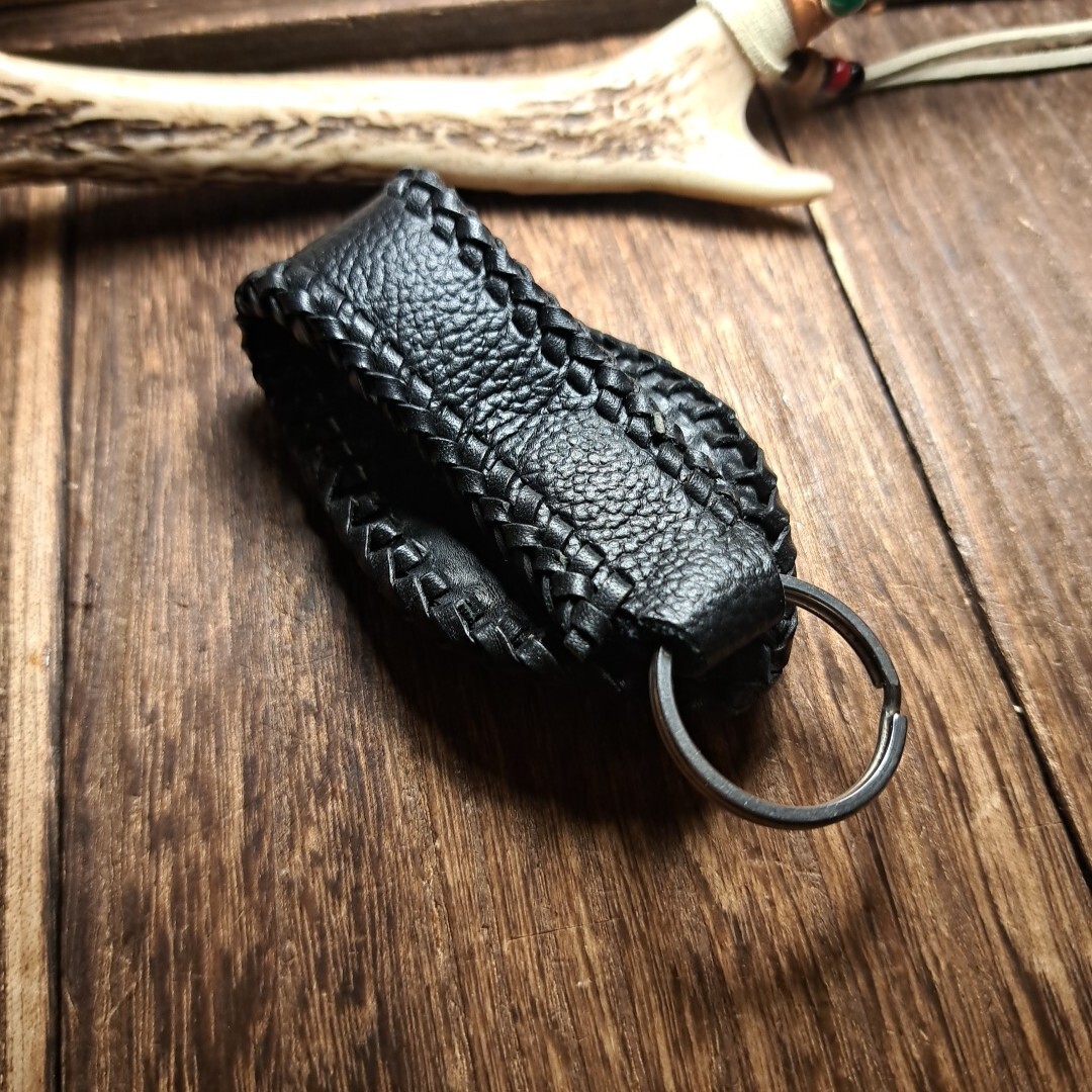 国産シュリンクレザーを使用しall handmade、手縫い仕上げで丁寧にレザーで編み込みを施しております。