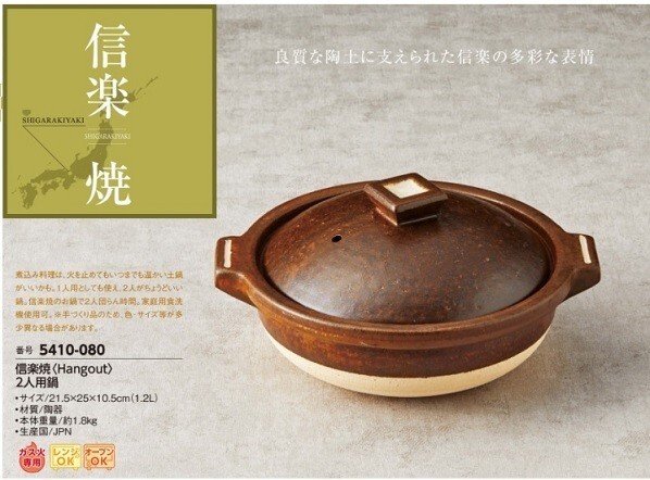 | 【商品番号】 5410-080 【商 品 名】 信楽焼〈Hangout〉 2人用鍋 |