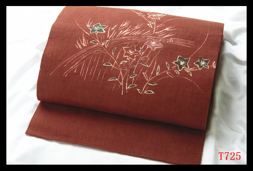 蔵【T725】西陣逸品 夏帯 紬紗 桔梗紋 赤銅色地 気品豊かに 正絹高級美術名古屋帯 ◇検◇簪着物袋帯和装小物帯締め