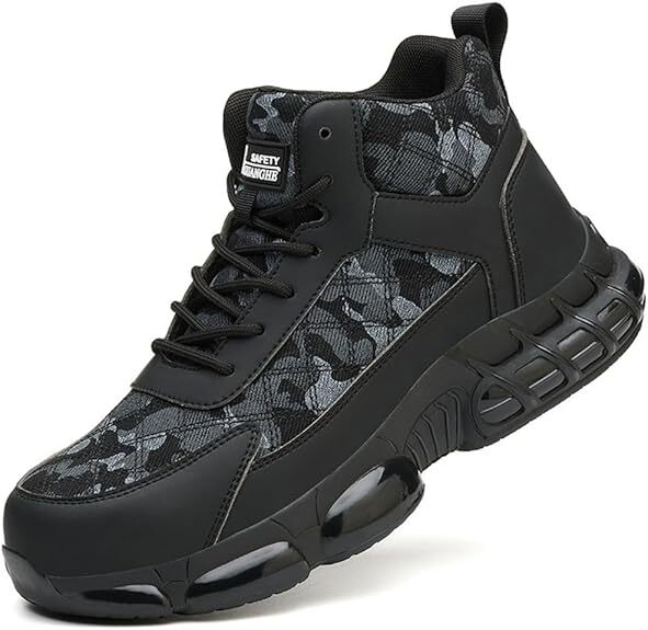 安全靴 ハイカット エアークッション 防水 セーフティシューズ 革 作業靴 軽量 耐摩耗 黒 サイズ:27.5cm