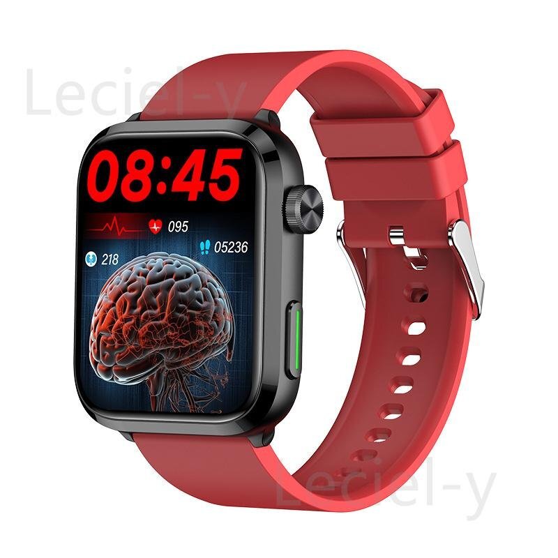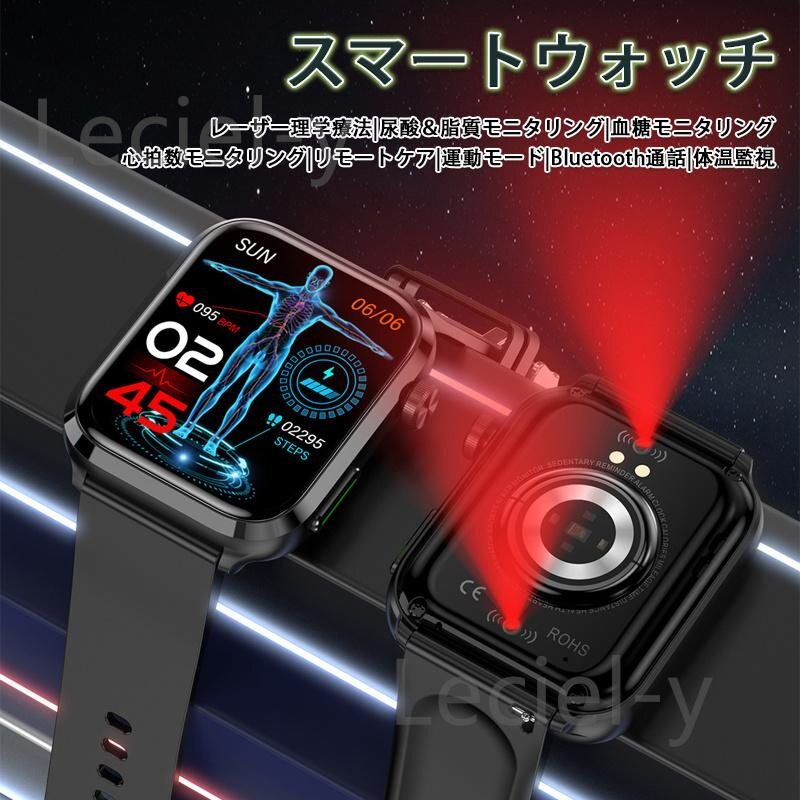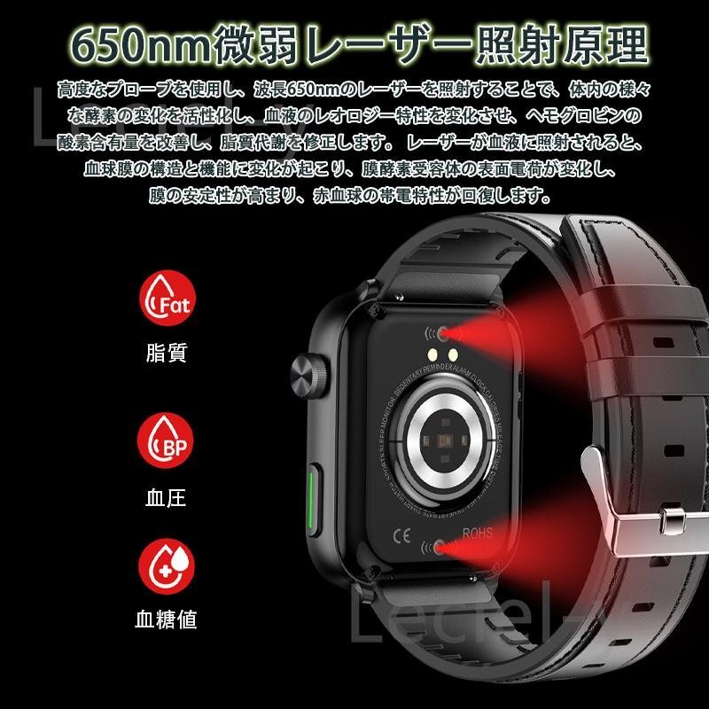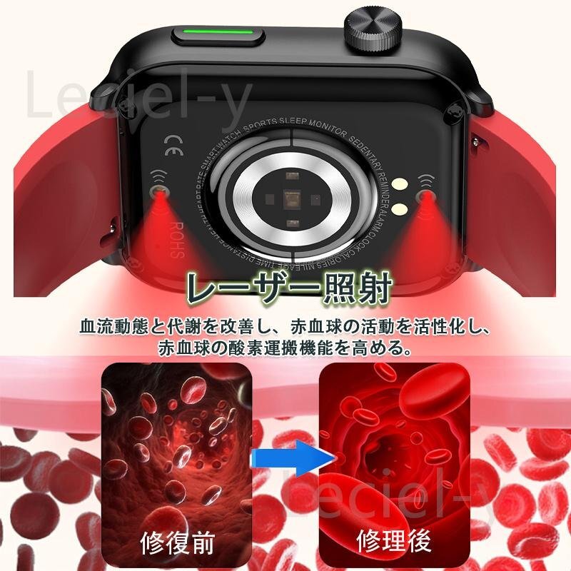 「レーザー理学療法 血糖値測定」スマートウォッチ 日本製 血中脂質尿酸心電図体温SOS心拍数血圧血中酸素睡眠着信通知活動量計 レッド