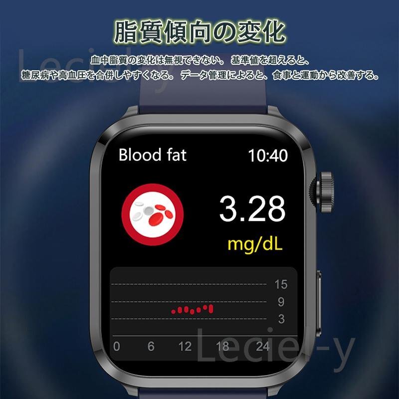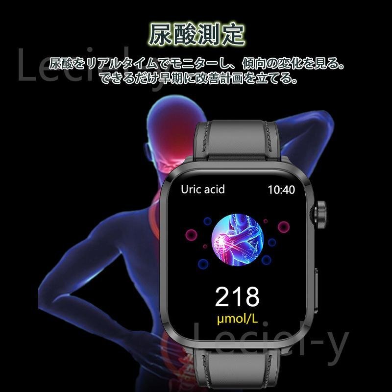 レーザー理学療法、血中脂質、尿酸、血糖値、心電図、体温、血圧、血中酸素、心拍数値などの測定機能搭載、ご自分に関わる機能搭載されており、常に気を配り、体調をより詳しく把握することができます。睡眠時間や睡眠の質を正確に計測できる、意識的にスケジュールや健康管理を改善します。また、拒否/通話/着信通知などの通知は、全部バイブレーションで通知されます。一切の大事な連絡を絶対に見逃しません。活動量計、歩数計、目覚まし時計、音楽制御/再生など実用な機能が備えます。