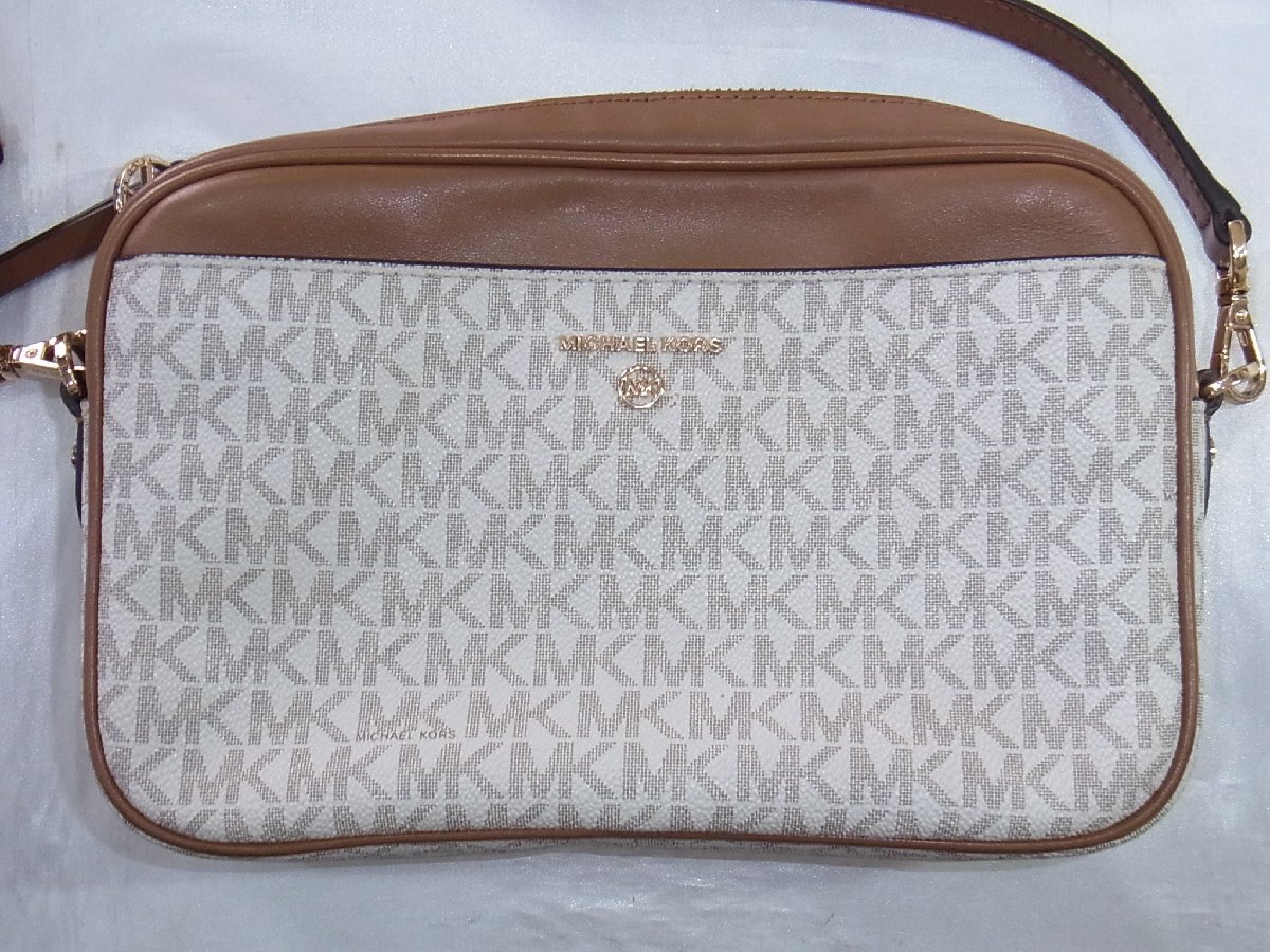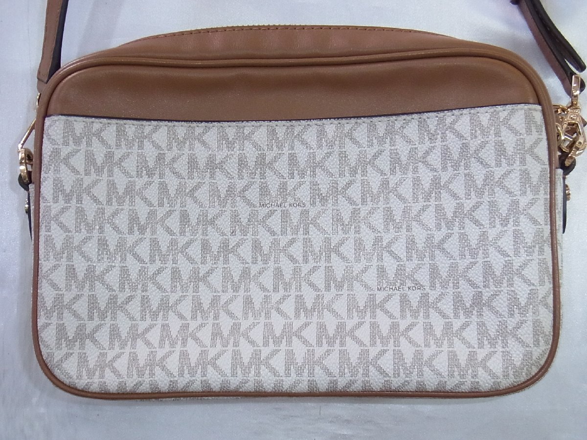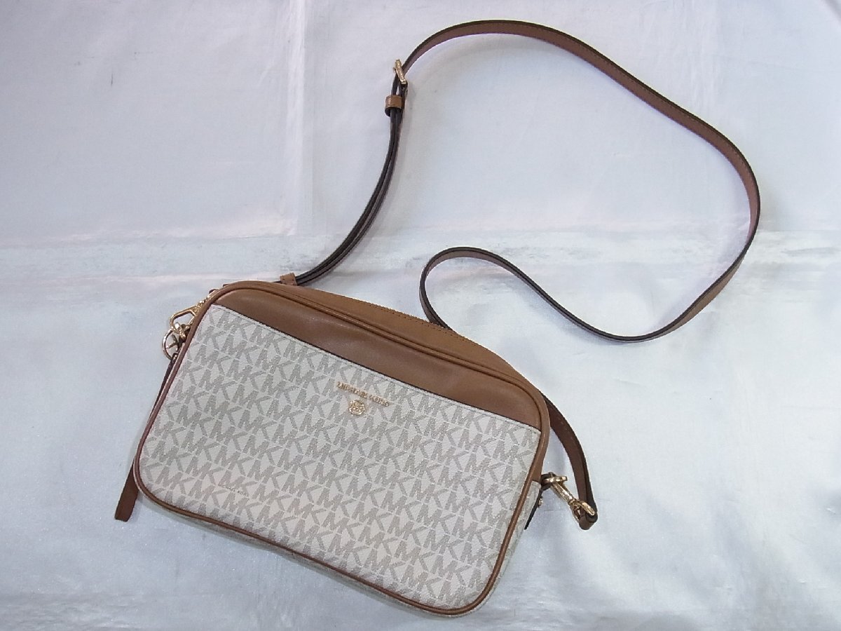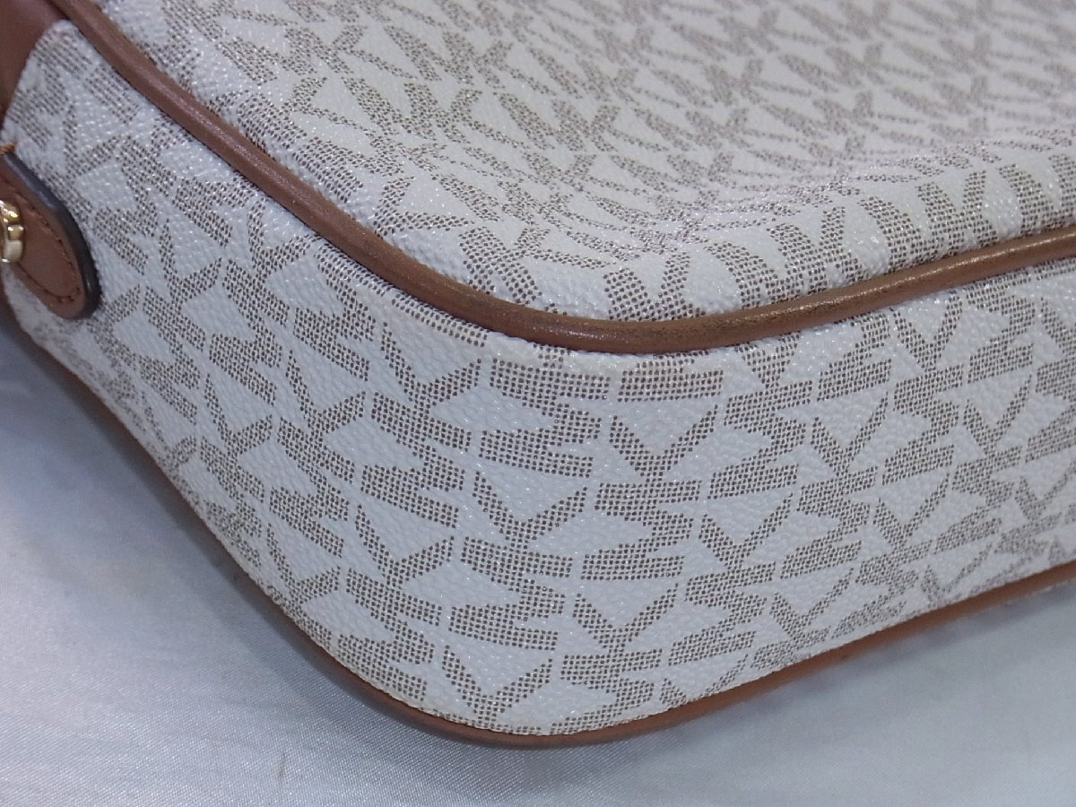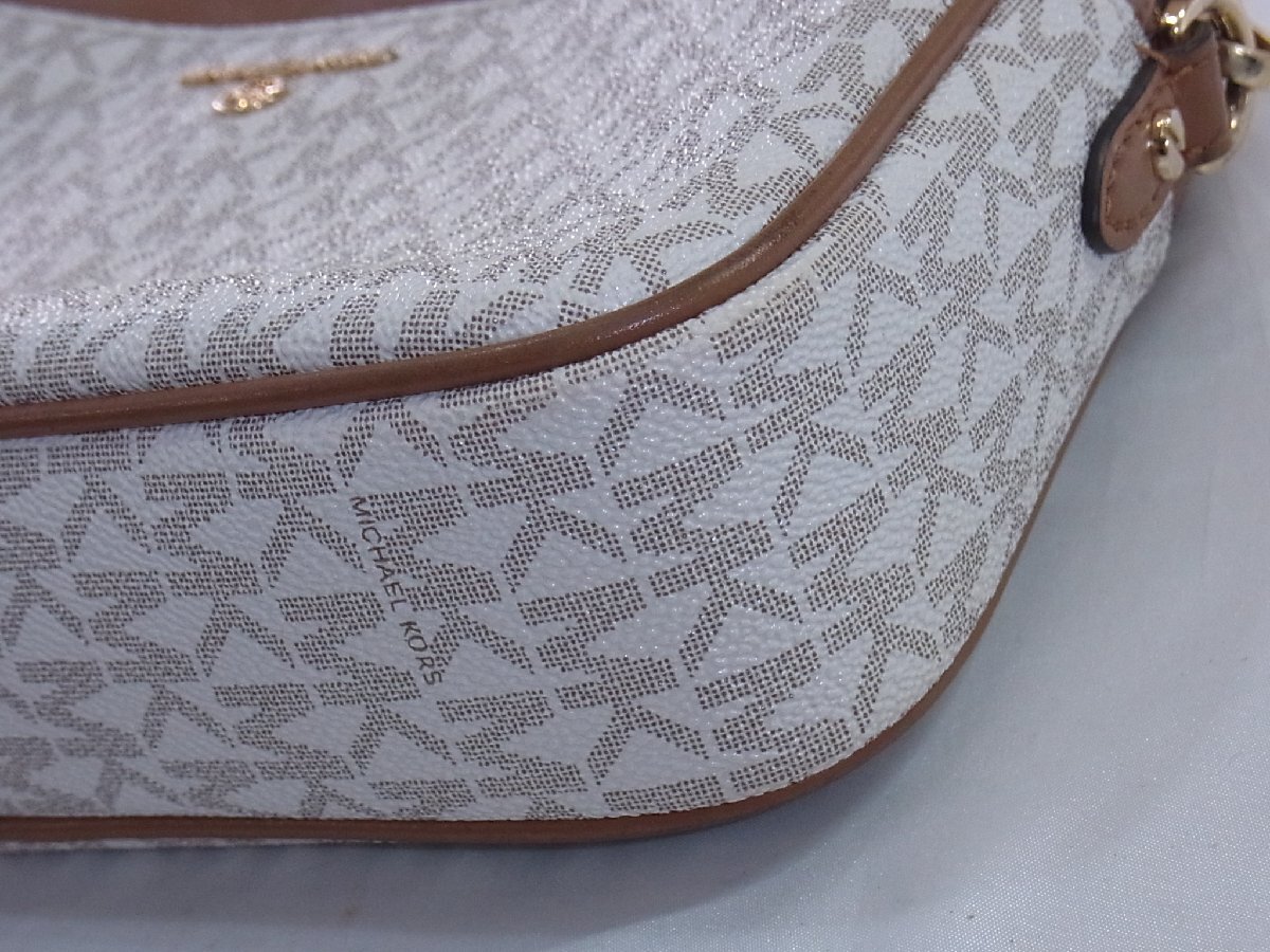 | マイケルコース MICHAEL KORS MK ショルダーバッグ PVCレザー ホワイトxブラウン 中古良品 | |