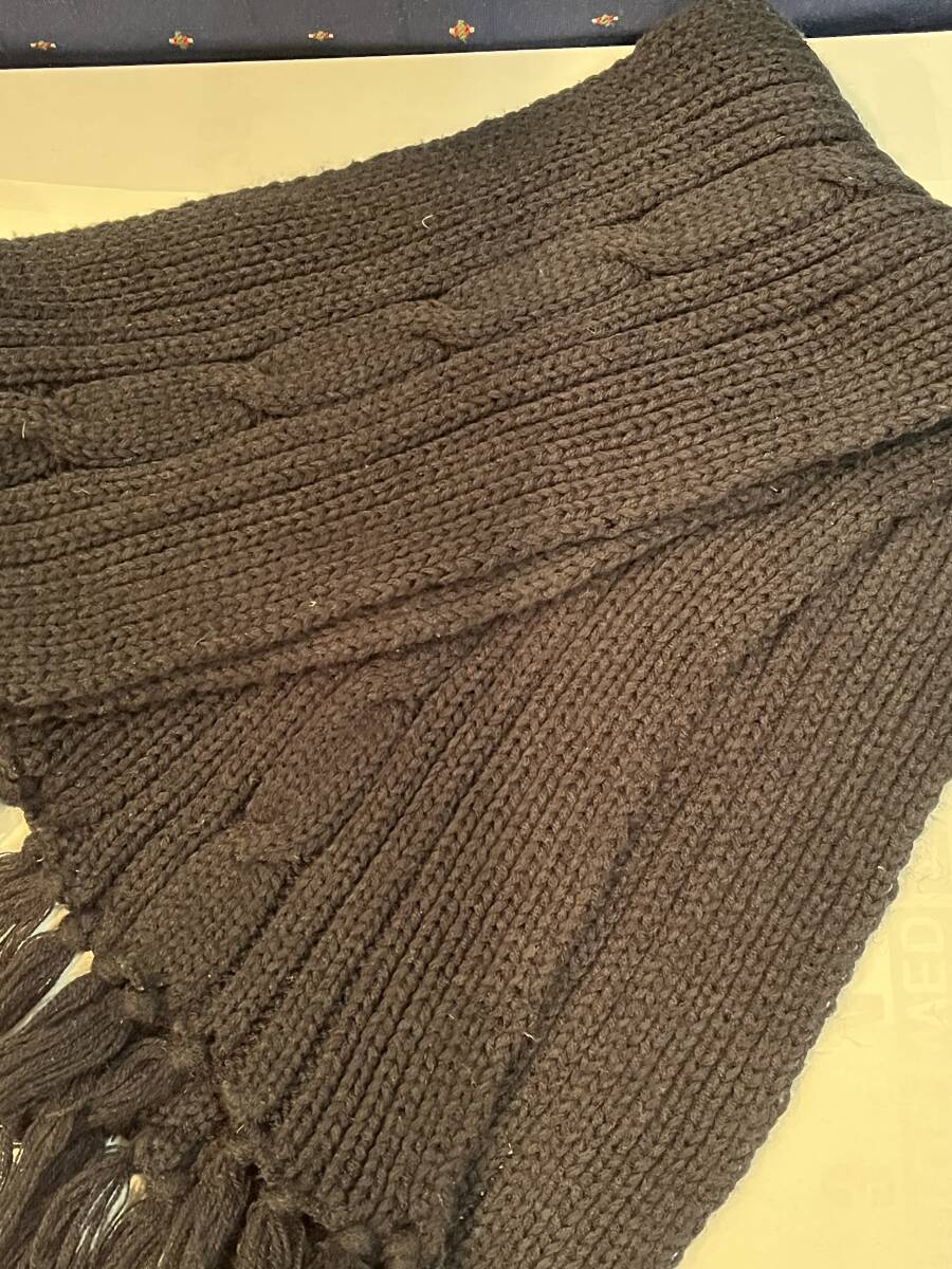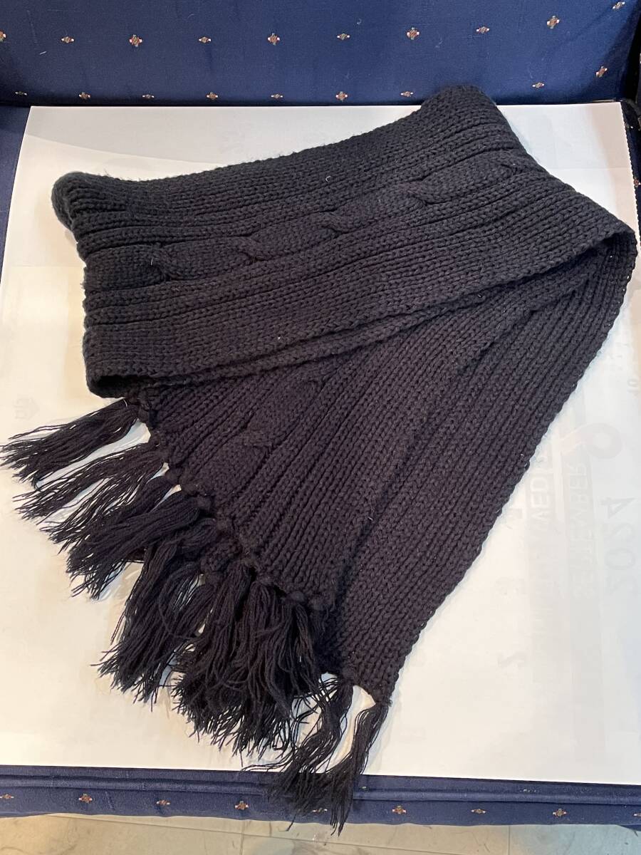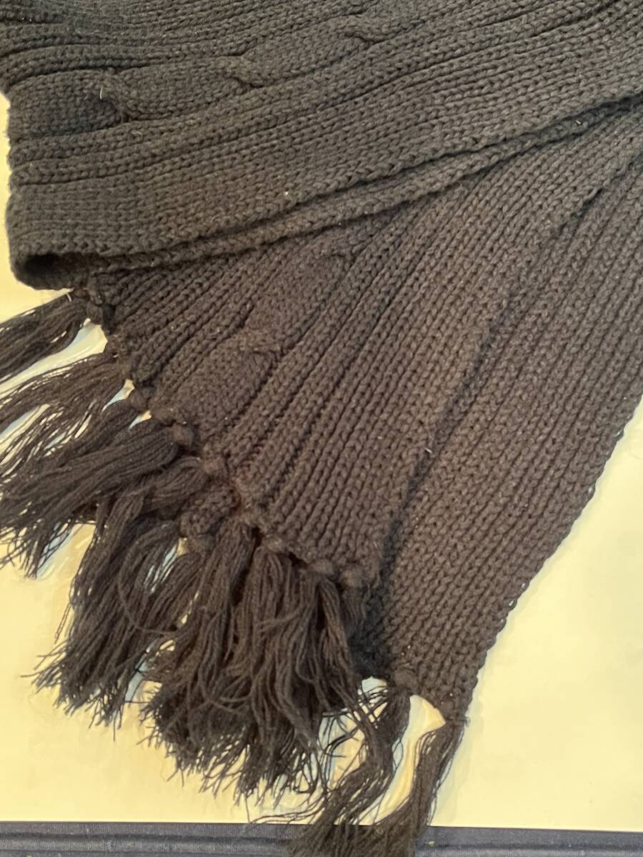 メーカー不明 ニットマフラー 手編み仕様 黒色 アクリル素材 スカーフ Scarf 男女兼用 中古 美品