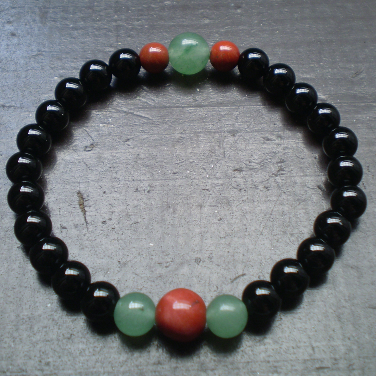 オニキスxレッドジャスパーxアベンチュリンブレスレット 天然石 パワーストーン