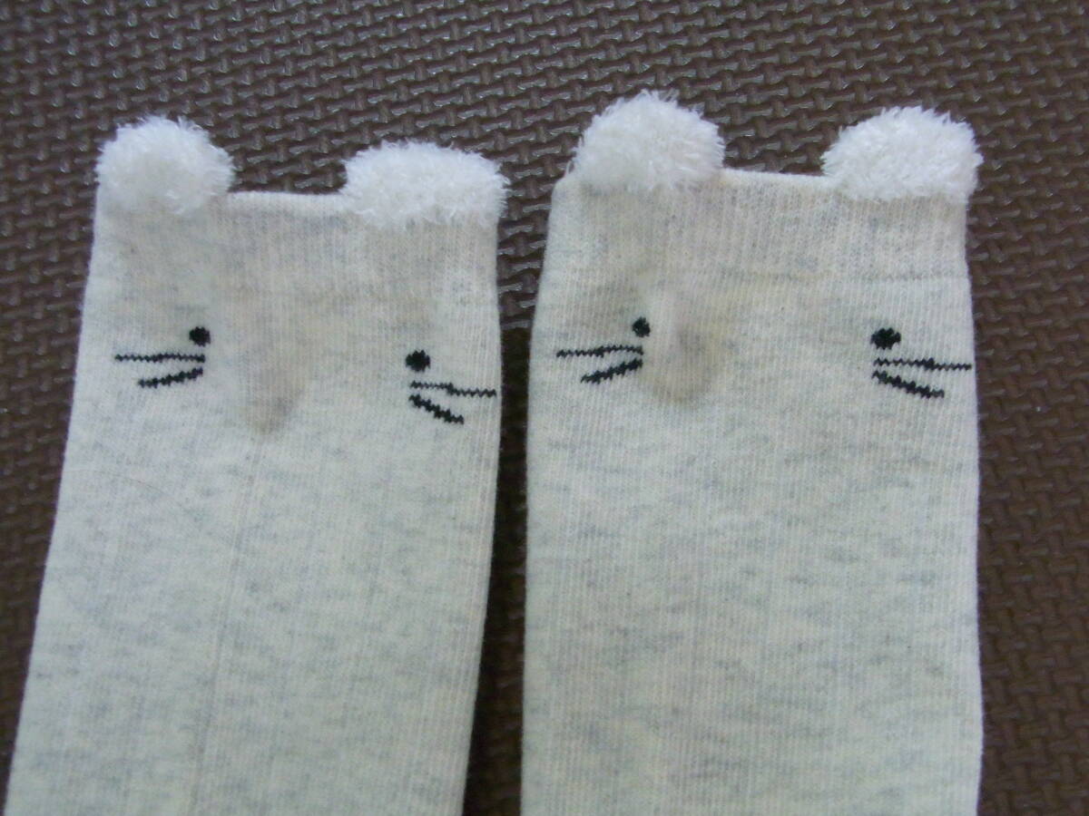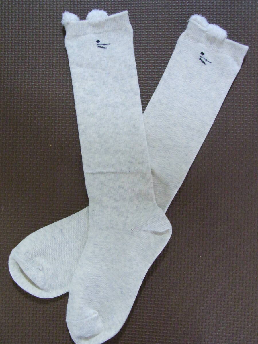 ★美品★可愛い女の子★ホワイトグレー色★リボン★ハイソックス★靴下★りりな★サイズ22cm★