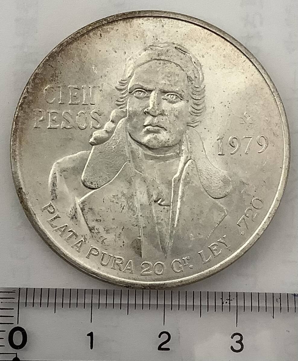 メキシコ 1979年に発行されたホセ マレロス記念 100ペソ銀貨。未使用