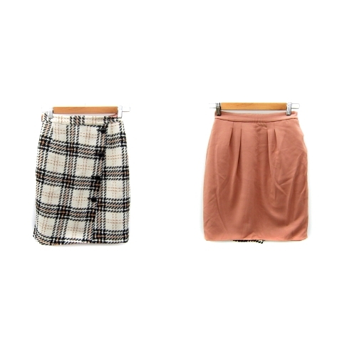 アプワイザーリッシェ タイトスカート リバーシブル ひざ丈 チェック柄 スリット 0 オフホワイト ピンクベージュ /SY2 レディース