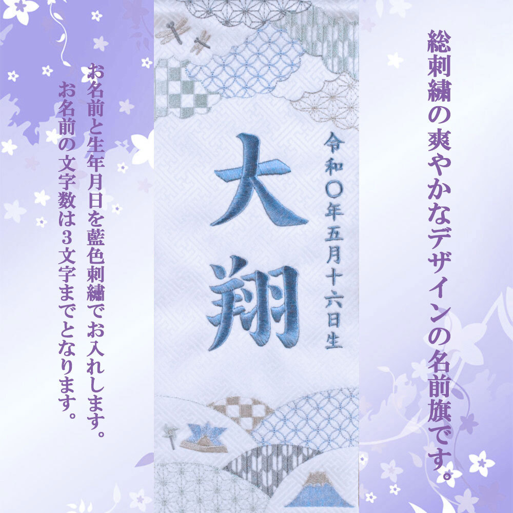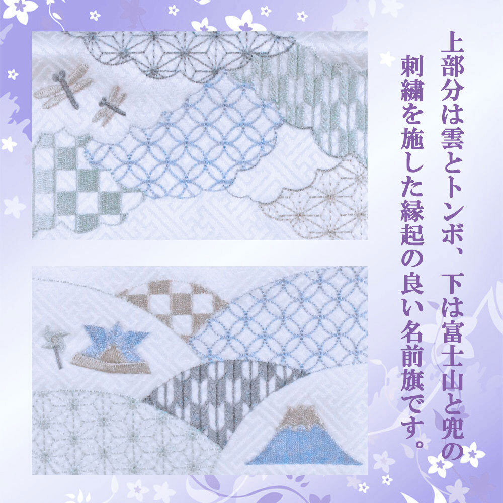 名前旗は京都西陣織を使用し、縁起の良い柄の刺繍を施しました。