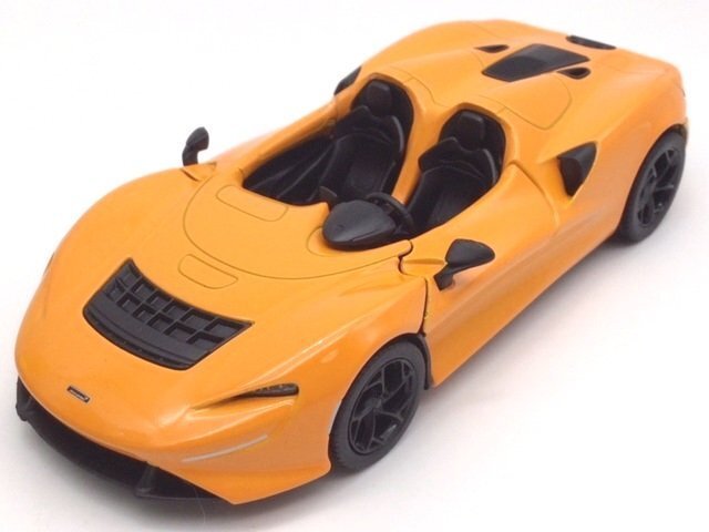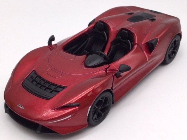 キンスマート社製 海外ライセンス品 1/36スケールのマクラーレン エルヴァ エルヴァは2019年に発表されたマクラーレン初のオープントップの市販モデル。 フロントのウィンドシールドがあるバージョンと無いバージョンがありますが、 こちらはウィンドシールドの無いバージョンになります。 ウィンドシールドが無いと走行中に目が開けていられないほどの風が顔に直撃し、運転が出来なさそうですが 走行時にはフロントフードの四角い部分が立ち上がって、まるでバグリフレクター装着時のような空気の流れを作り 走行中は運転席部分に全く風が入ってこないとのことです。 ミニカーのサイズ:全長約12.5センチ、高さ約3センチ、幅約4.8センチ。 ・両サイドのガルウィングドア開閉可能。 ・プルバック機能付きですのでチョロQみたいに走らせることができます。 ・素材はボディはダイキャストメタル製、 ・内装、シャーシはプラスチック製。 ・内装は黒 ・左ハンドル こちらの商品は箱入りではございませんのでご注意くださいませ。 ●神経質な方にはお勧めできません● 1台1台検品し丁寧に梱包させて頂きますが 入荷時からのかすかな傷や汚れ等があるかもしれません。 あらかじめ、ご了承下さいませ。 |