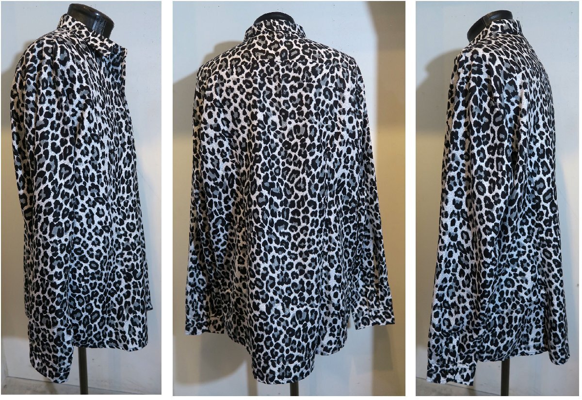 新品 3XLサイズ 豹柄シャツ ビッグサイズ 1568 グレー パンサー レオパード ヒョウ柄 ロカビリー アニマル 柄シャツ ヴィジュアル系