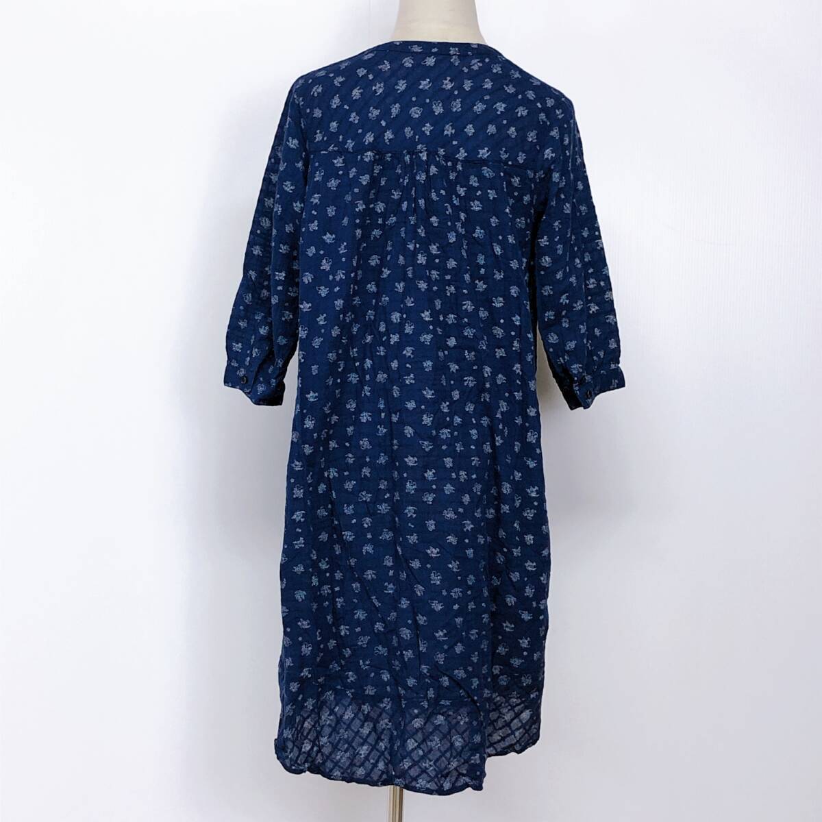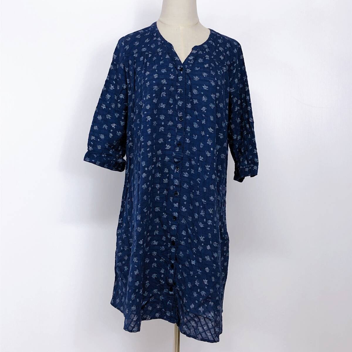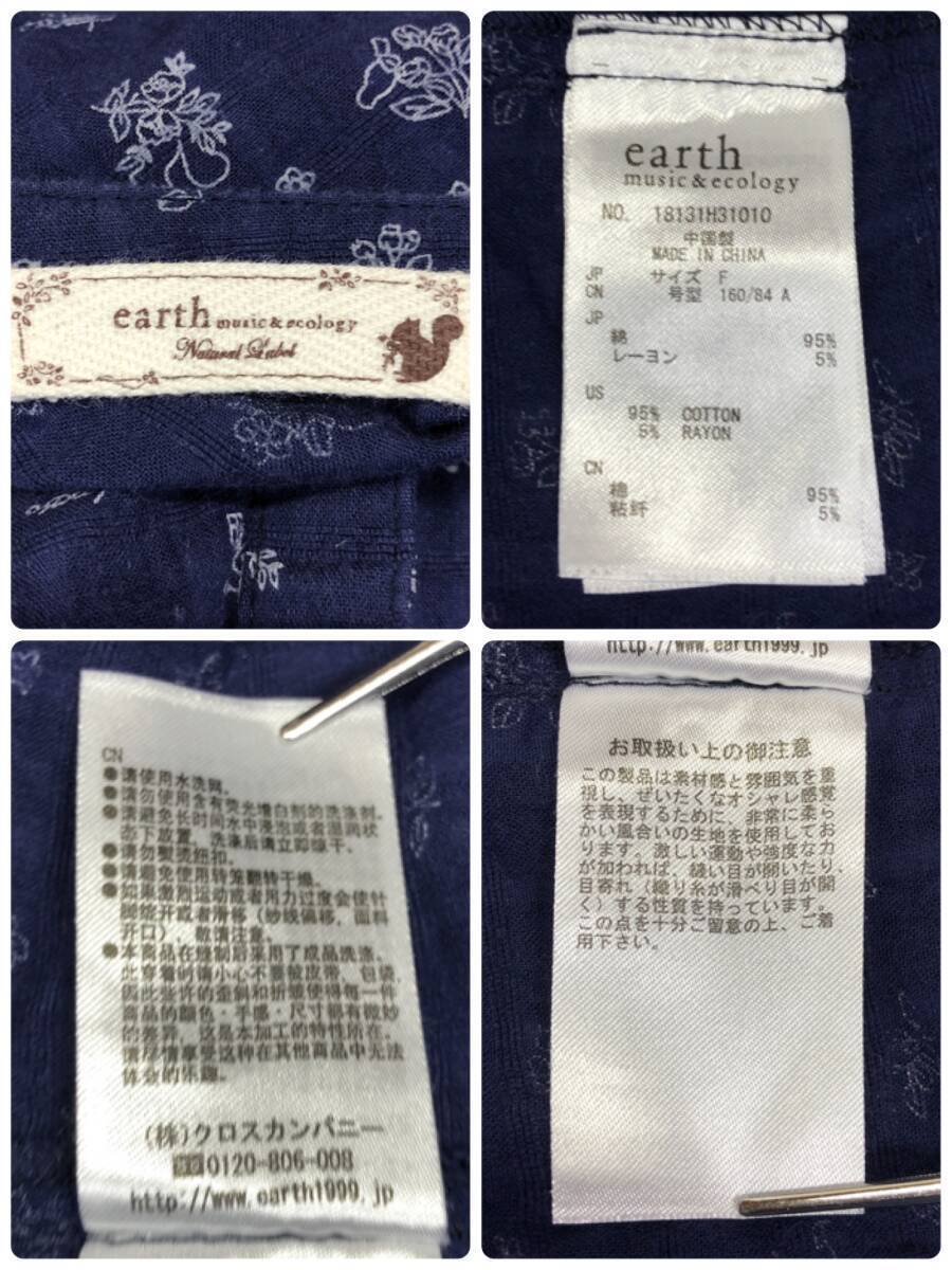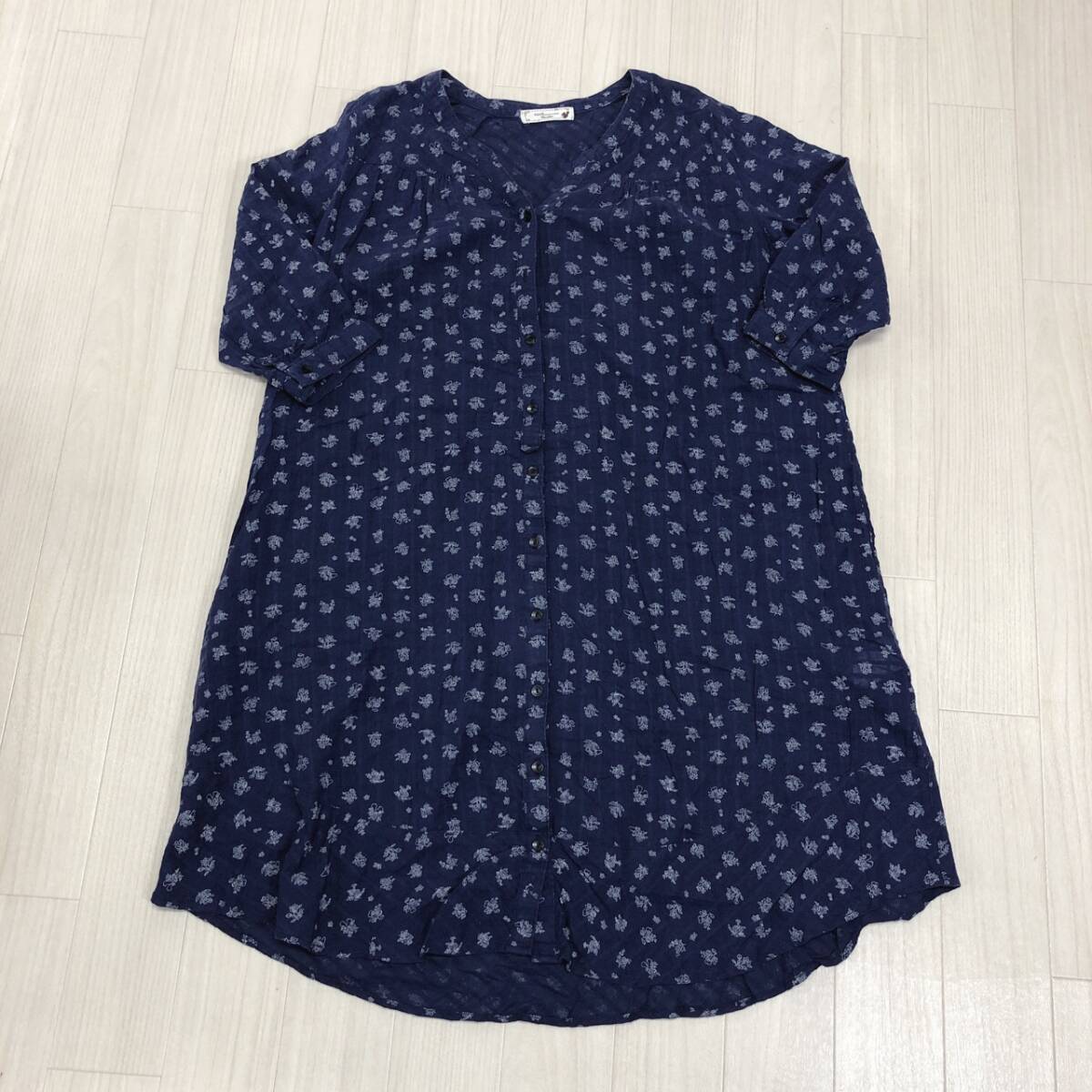 YX891 earth music&ecology アースミュージック&エコロジー レディース トップス ブラウス チュニック F ネイビー 紺 花柄 綿 コットン