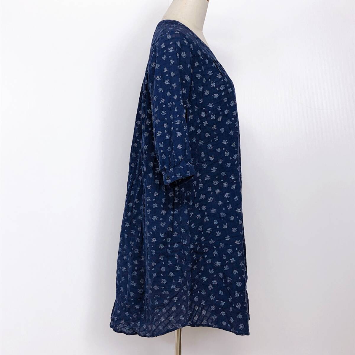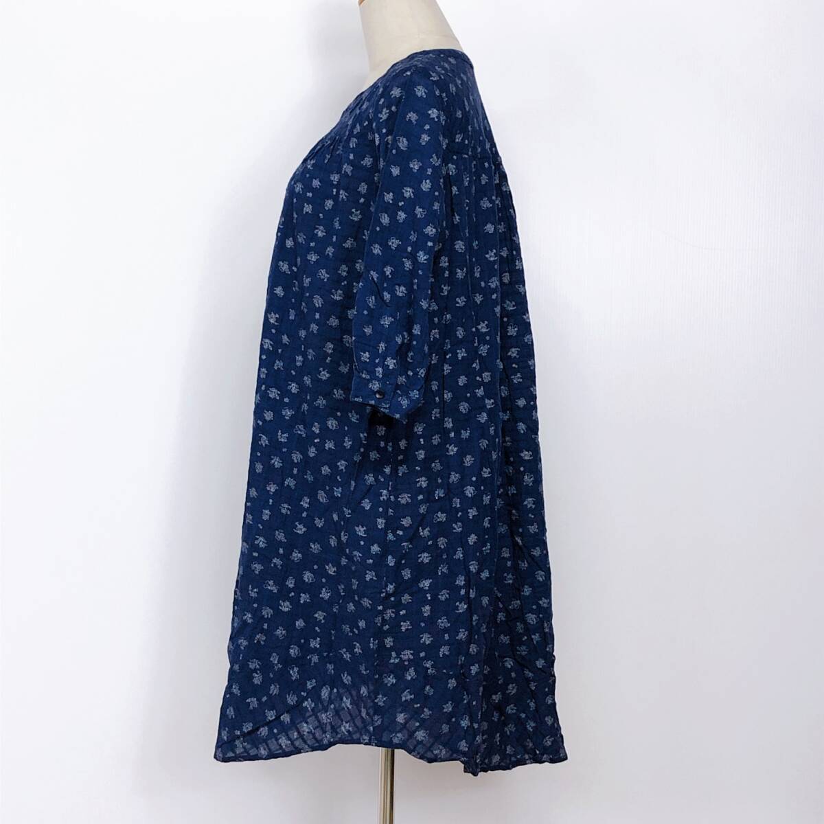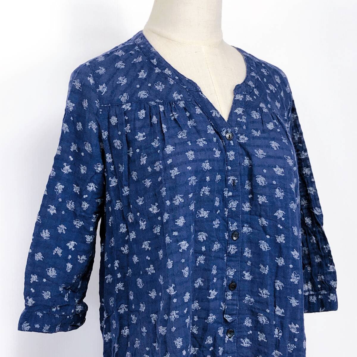 YX891 earth music&ecology アースミュージック&エコロジー レディース トップス ブラウス チュニック F ネイビー 紺 花柄 綿 コットン