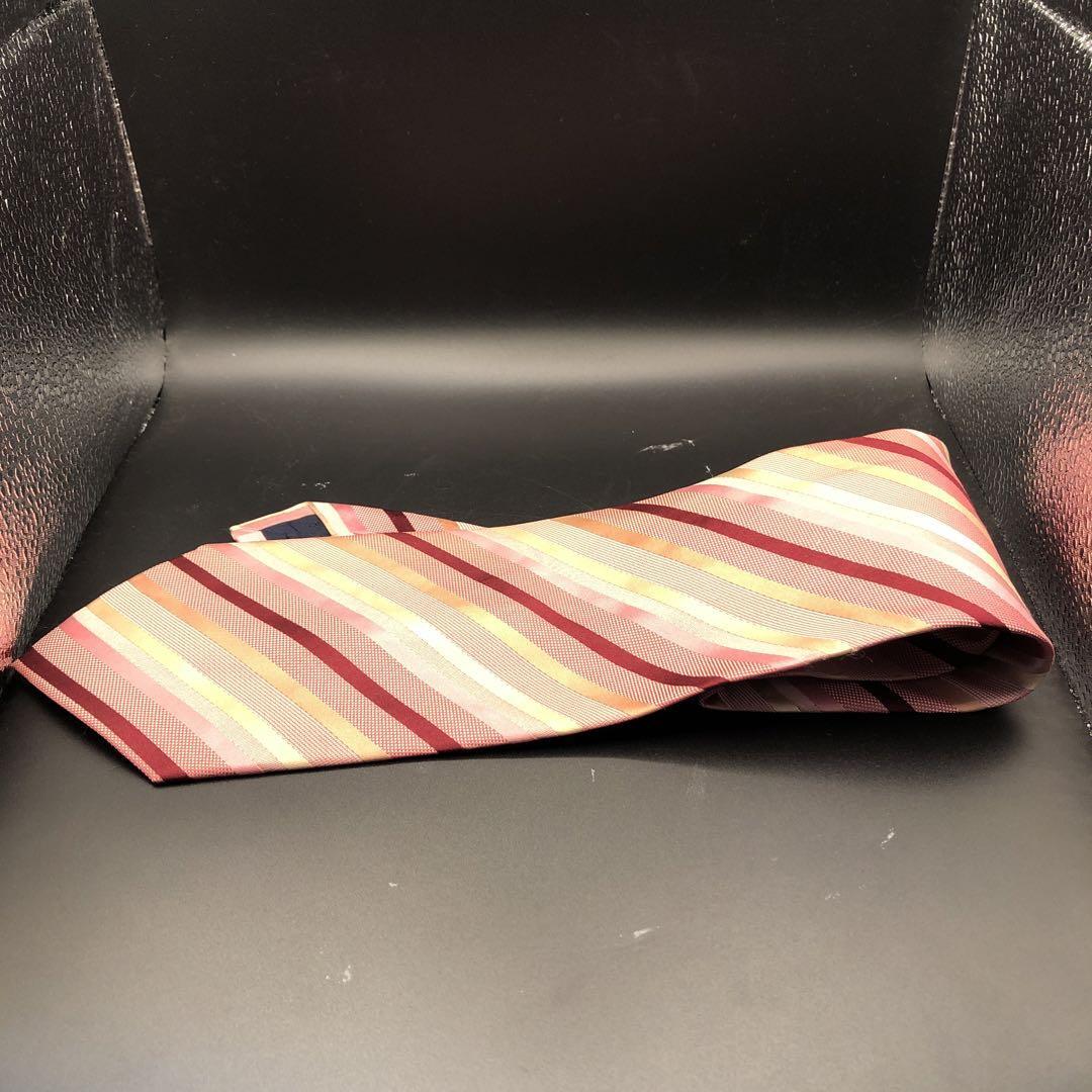ピンク系のストライプデザイン、シルク素材のネクタイです。