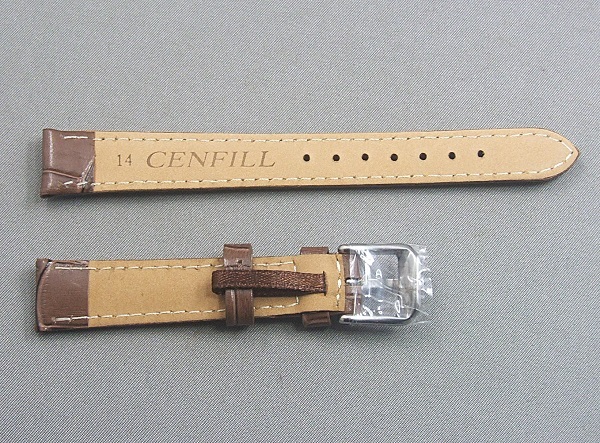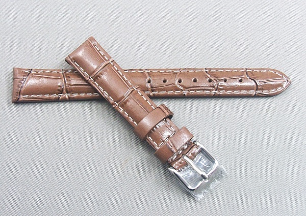 ◆ 超得プライス!■ 牛革バンド(クロコタイプ)★ 14 ㎜ ◆ チョコ色 ★ 銀色尾錠 ★ 金色尾錠付き(別途)◆