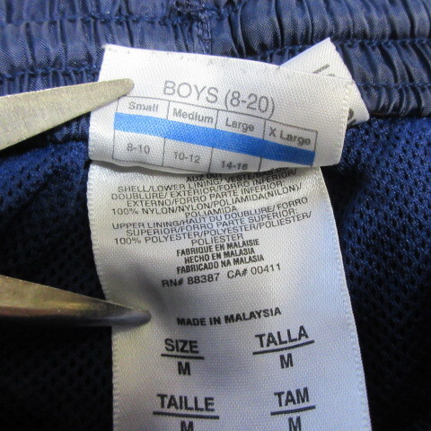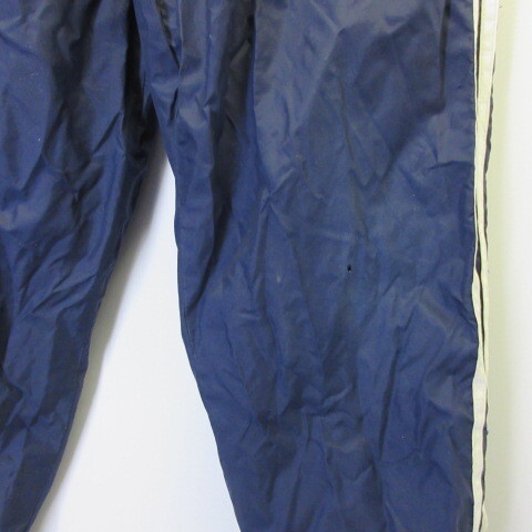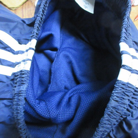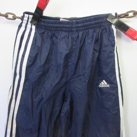 ★Size 表記 BOYS M 10-12ウエスト 25cm-30cm(60cm) ゴムで伸びます股上 27cm , 股下 65cm ,裾幅 11cm,全長86cm 渡り28cm★Goodsスポーツ古着 アディダス ナイロンパンツお子様の練習着にいかがでしょうか。★Condition 10/5 膝に穴裾に擦れ、穴多少の汚れ 着用には問題ありません★Material ナイロン★Color 紺★Made in マレーシア