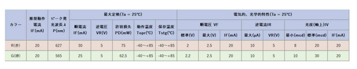 素子色は白で発光色は赤又は緑 OR オレンジ色です。