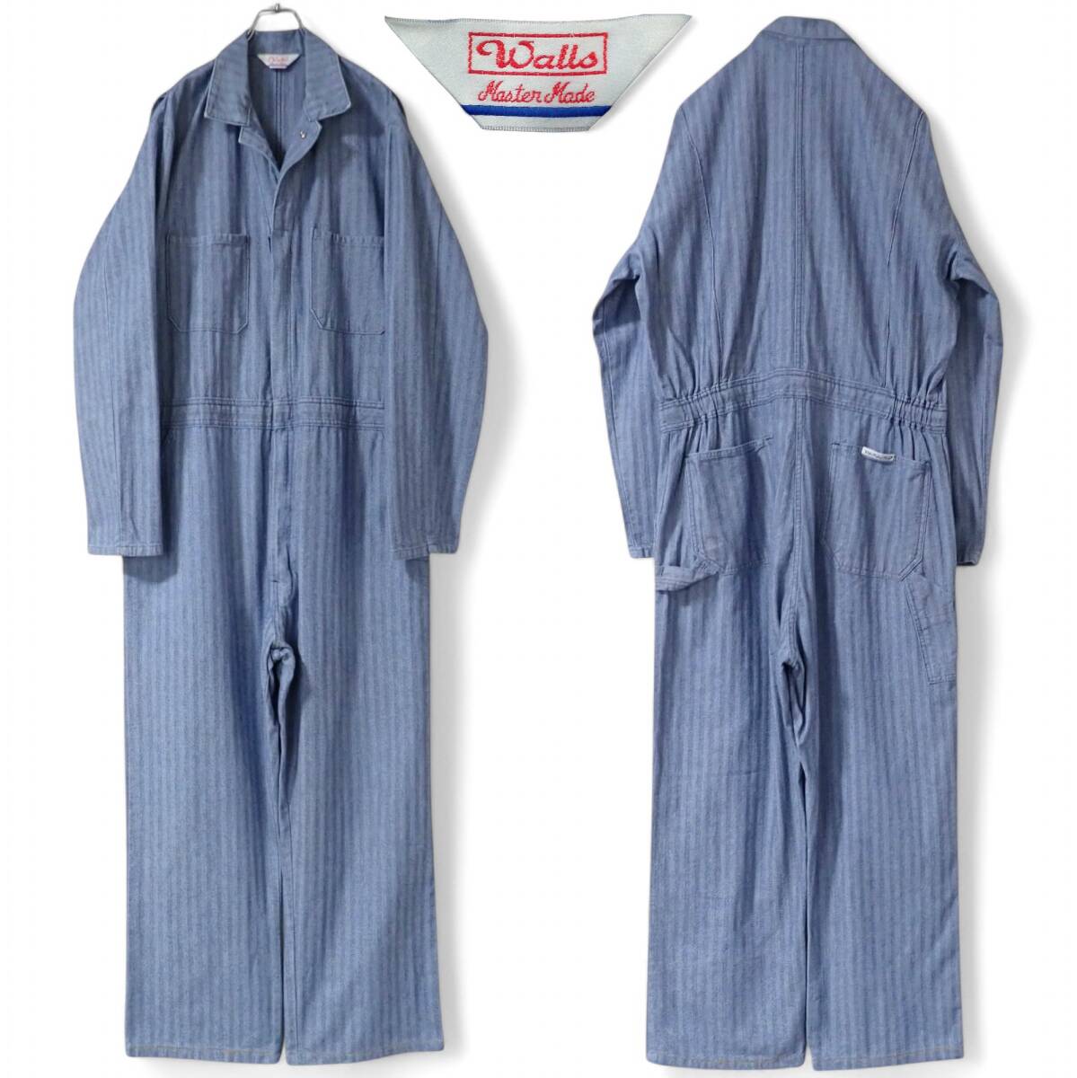 6415/Walls ヘリンボーン ツナギ●ダブルジップ カバーオール オーバーオール オールインワン ジャンプスーツ ワークウェア 古着
