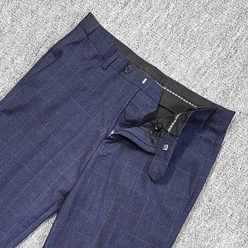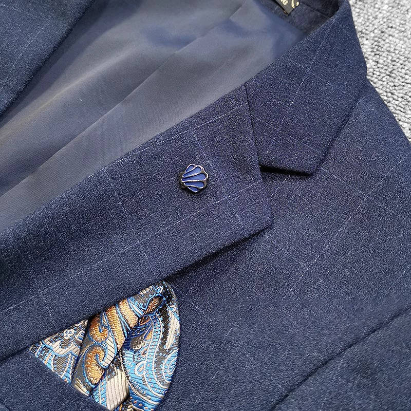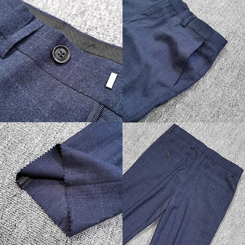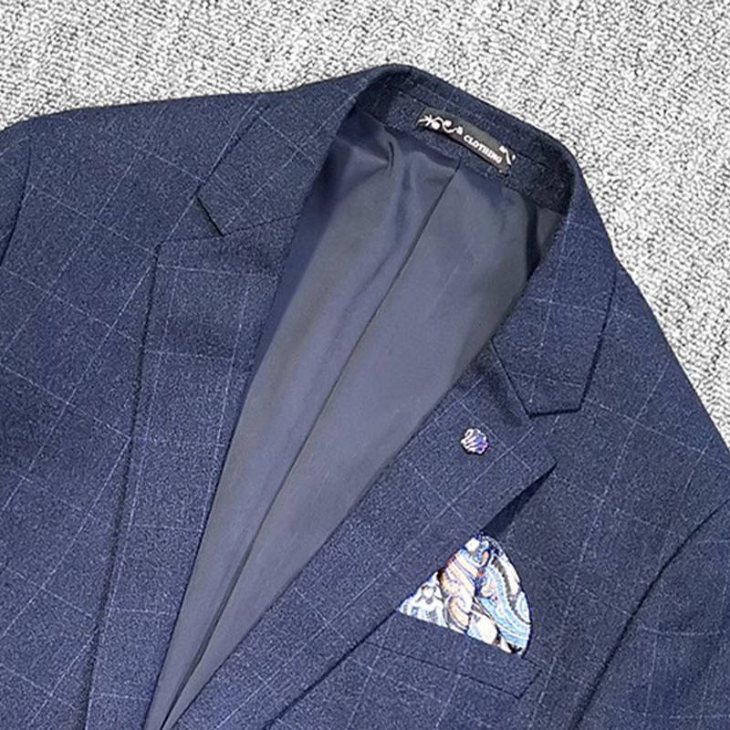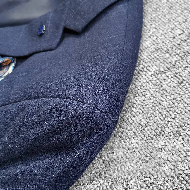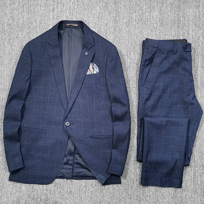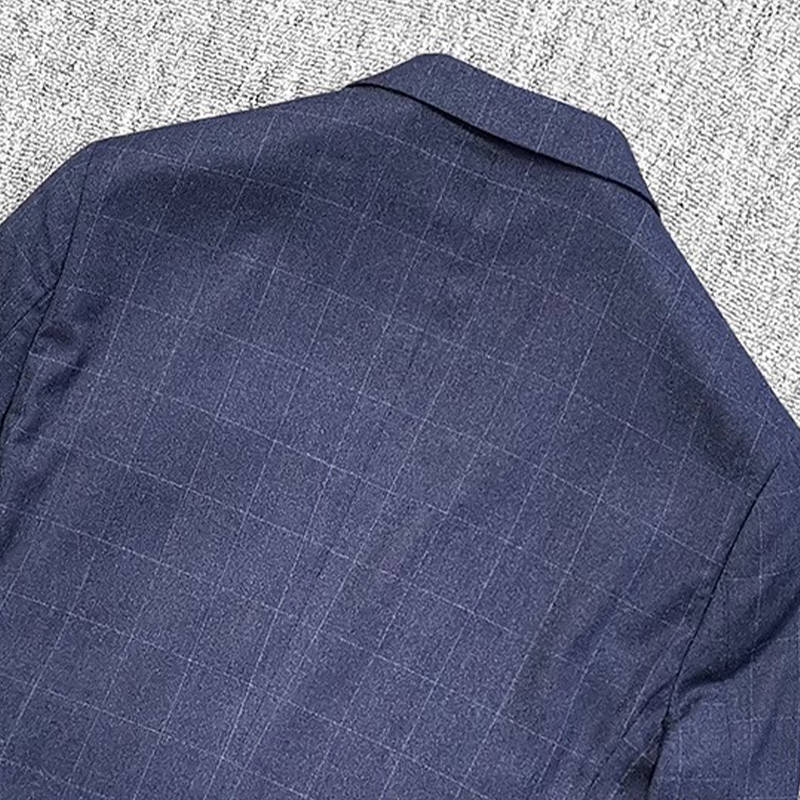 T0642-M/紺色 エレガントで高品質! 新品 メンズ ウール混 スーツ シングルスーツ 格子柄 快適な着心地 紳士 春秋 ビジネス ブレザー