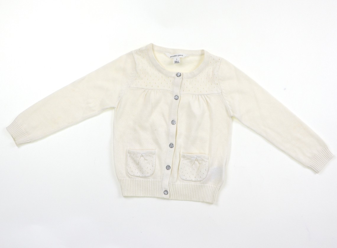 実際のサイズ表記は3です。袖に複数の小さなシミがありますが、まだお使い頂けそうです。コットン素材。実際のサイズ表記は96cmです。