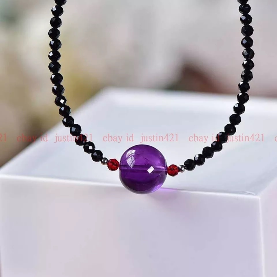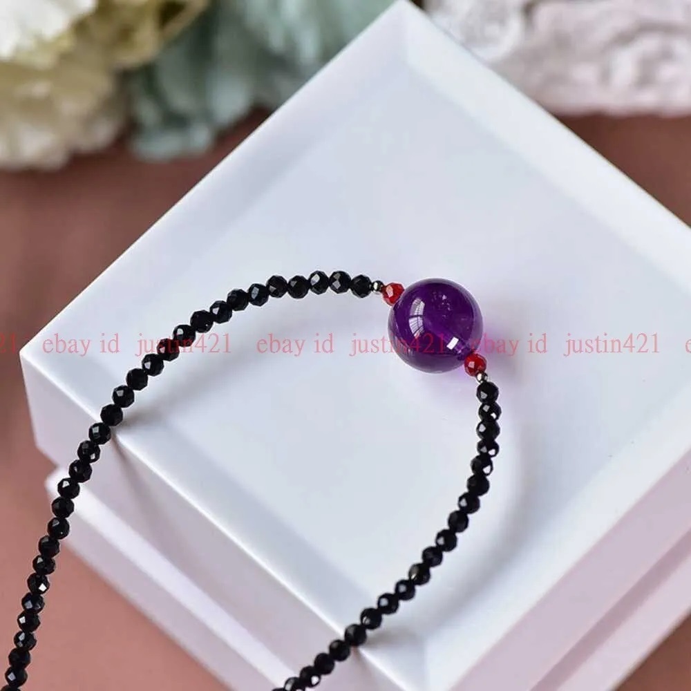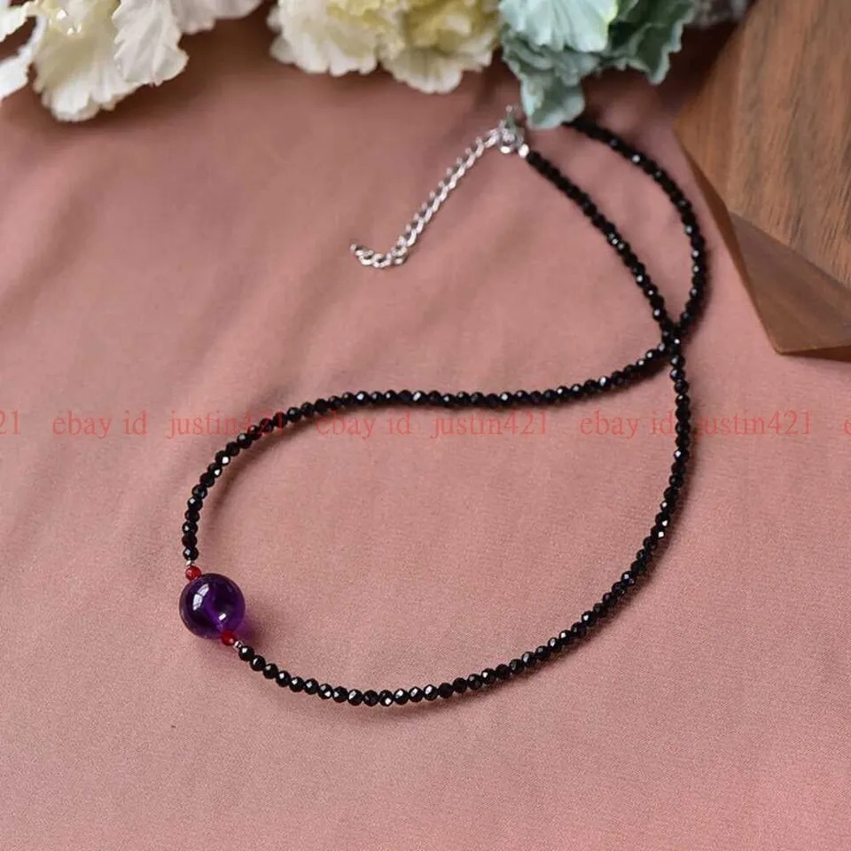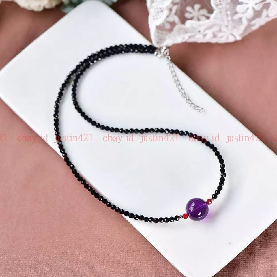アメジスト ネックレス 首飾り 2週間以上かかります。天然の3mmブラックスピネル球体ジェムストーン&パープルアメジスト18インチAAA ++