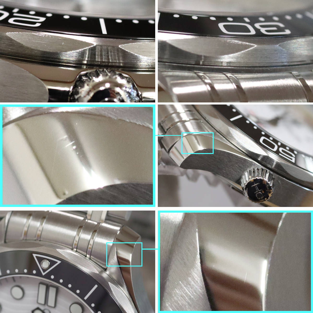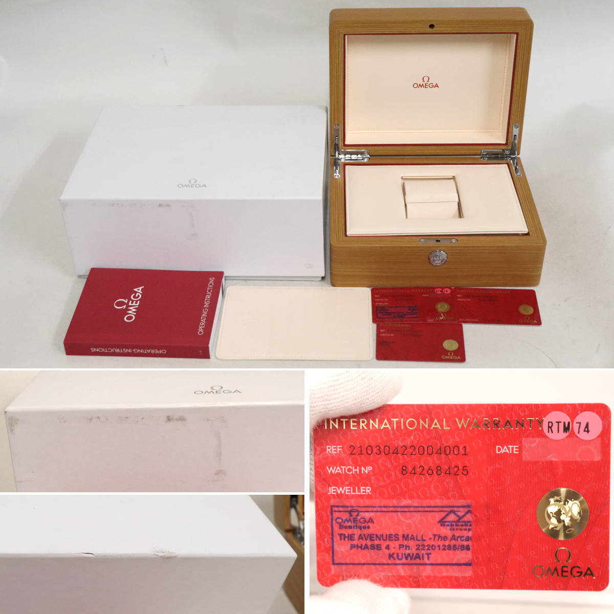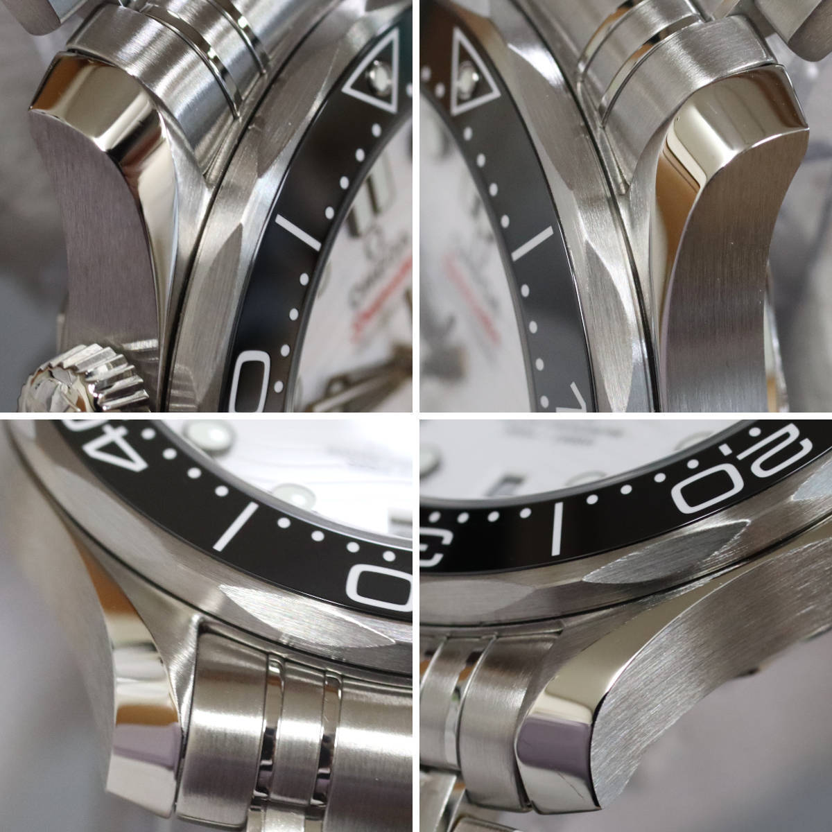 オメガのメンズウォッチ、シーマスターダイバー300Mコーアクシャルマスタークロノメーター(210.30.42.20.04.001)の中古品です。 11時位置と1時位置のラグに傷があります。 ケース裏の一部に傷があります。 ベルトには使用に伴う細かな傷があります。 外箱には汚れがあります。 日付が23時57分頃に切り替わります。 付属品は以下の通りです。 内外箱(外箱に汚れあり) 保証書 取扱説明書
