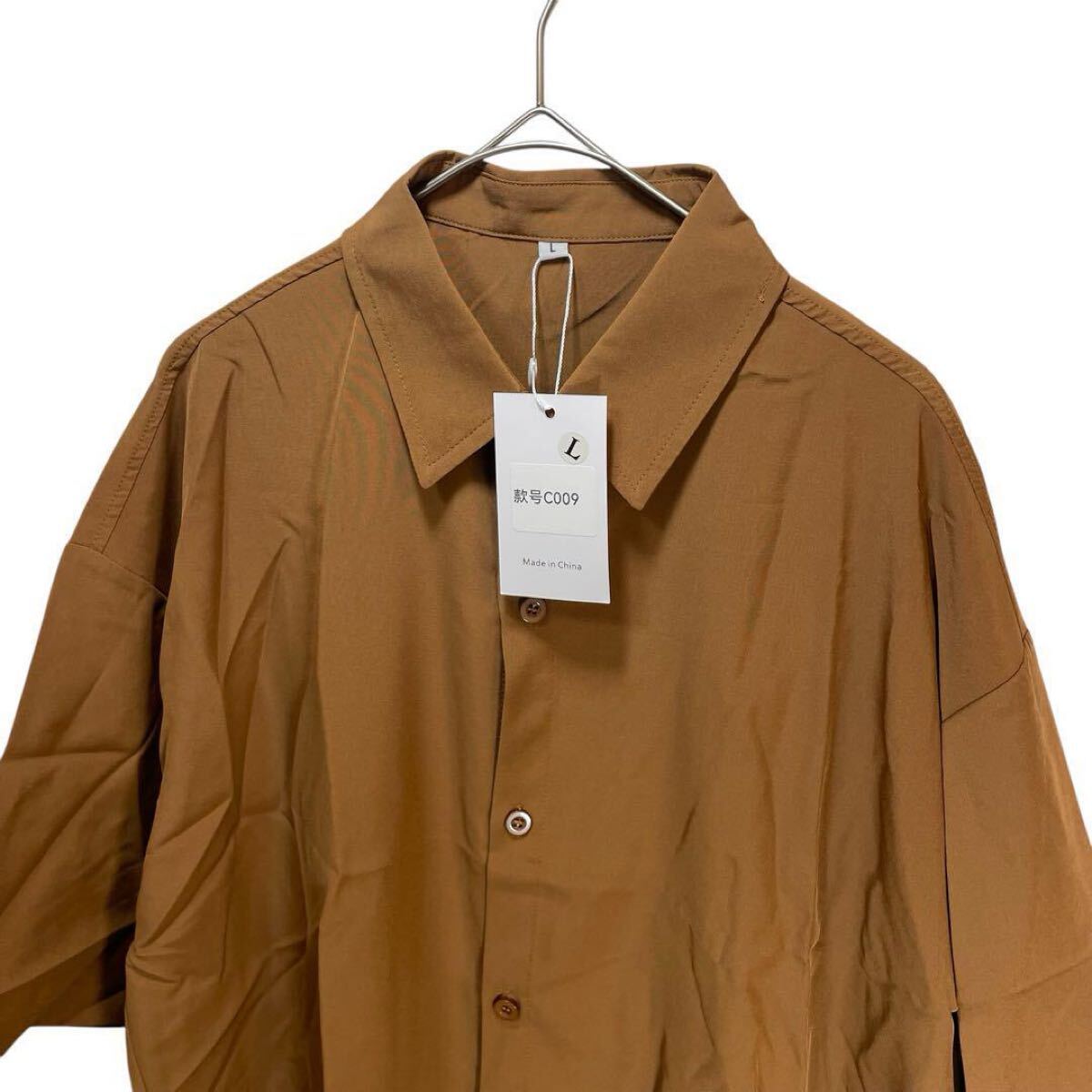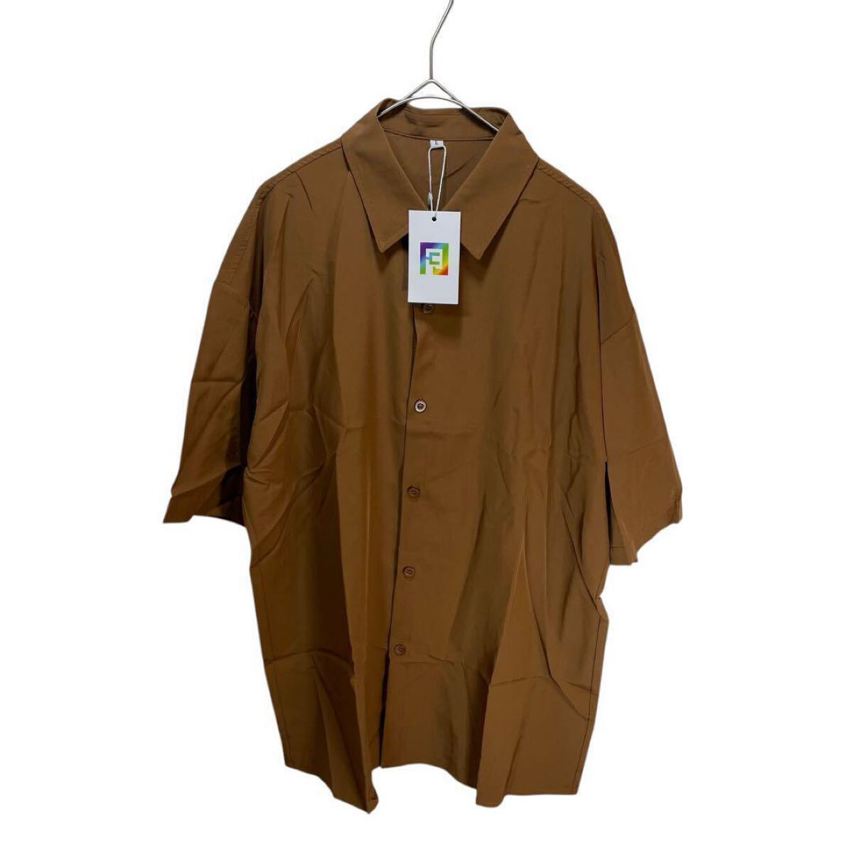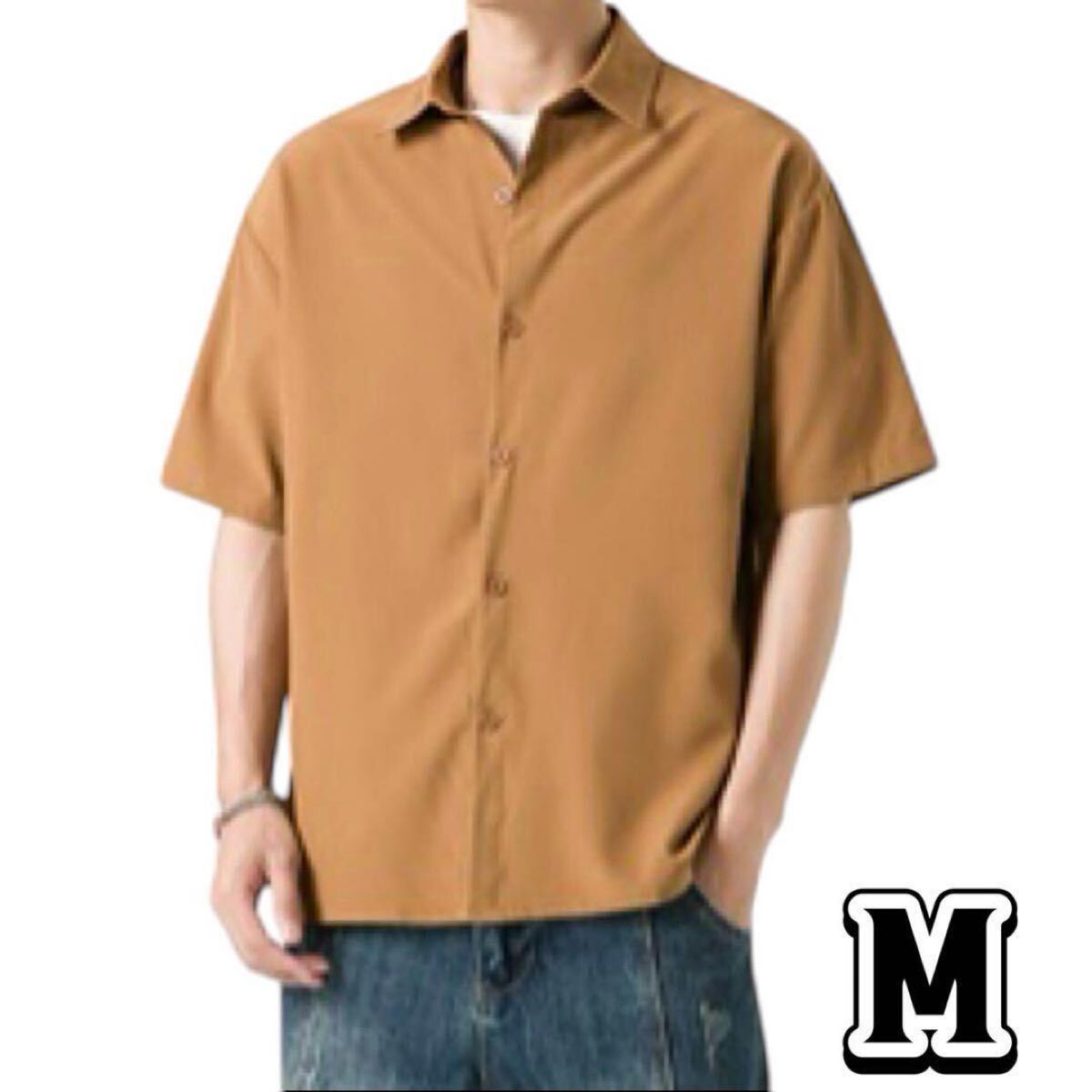 半袖シャツ メンズ 夏用 無地 シンプル ワイシャツ カジュアル ブラウンM