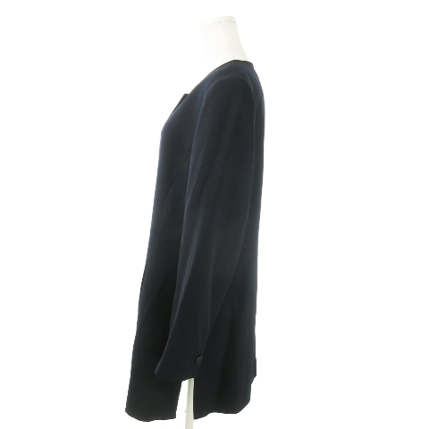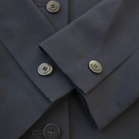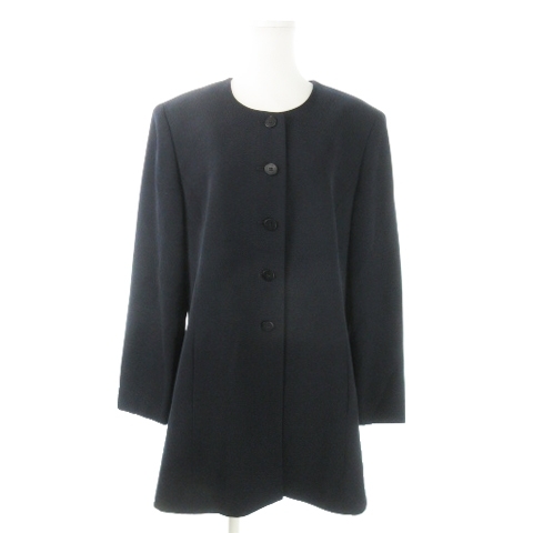 バーバリーズ Burberrys ヴィンテージ ノーカラージャケット ロング丈 サイドスリット ウール 大きいサイズ 15 紺 ネイビー