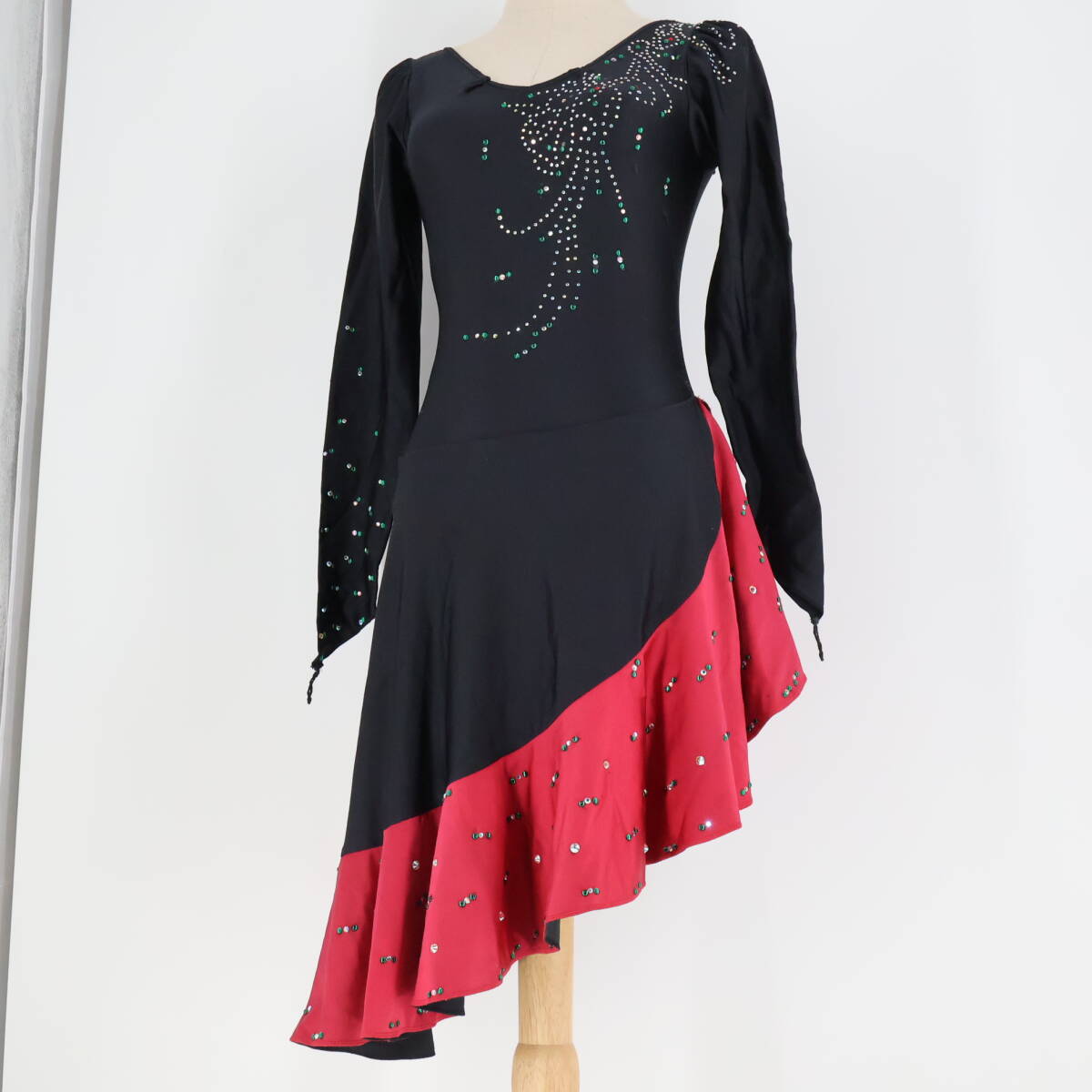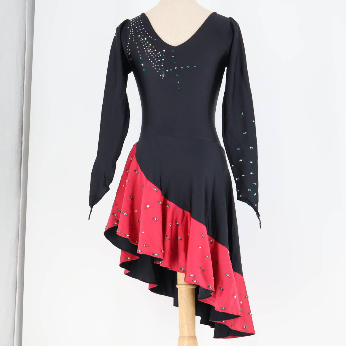 | 商品説明 | 【商品名】社交ダンス衣装 ラテン ドレス ワンピース 【サイズ】M表記 平置き実測:総丈約91cm(裾~肩部まで) 、身幅約32cm、ウエスト約25cm~ ※実測の為、多少の誤差はご容赦願います。 【仕様】 ・ファスナー無し ・レオタード(ボタン)仕様 ・伸縮性有り ・胸パッド無し ・肩パッド無し ------------------------------------ 【ポイント】 ▽Chacott チャコット 日本製 ▽派手すぎないデザインでかわいいドレス ▽伸縮のある素材で動きやすい ------------------------------------ 【撮影時使用トルソー:女性用トルソー7号(少し細めのサイズです)】 ■トルソーサイズ詳細 肩幅約37cm、バスト約83cm、ウエスト約60cm、ヒップ約81cm |