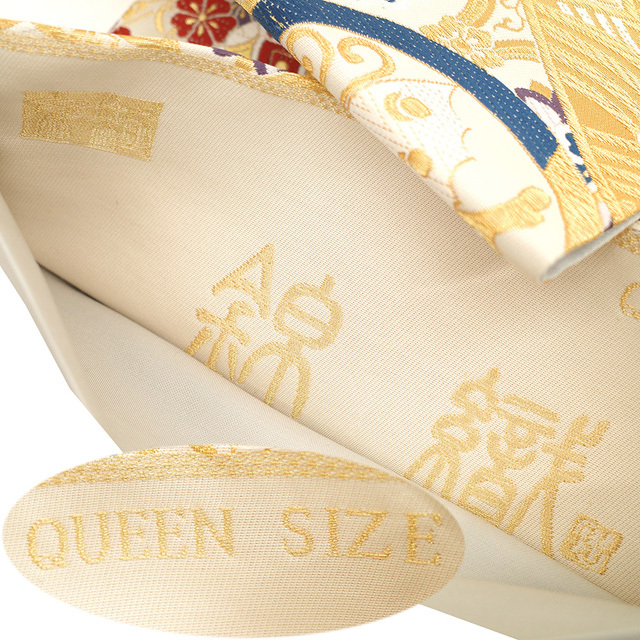 【新古品】 袋帯 フォーマル 未使用 正絹 京都 西陣 京洛苑たはら 金糸 白ベージュ 蝶 向かい鶴 菊 桜 七宝 桐 長尺 QUEEN SIZE 訪問着 振袖 にも 袋帯 春 秋 冬 仕立て上がり みやがわ sb53588