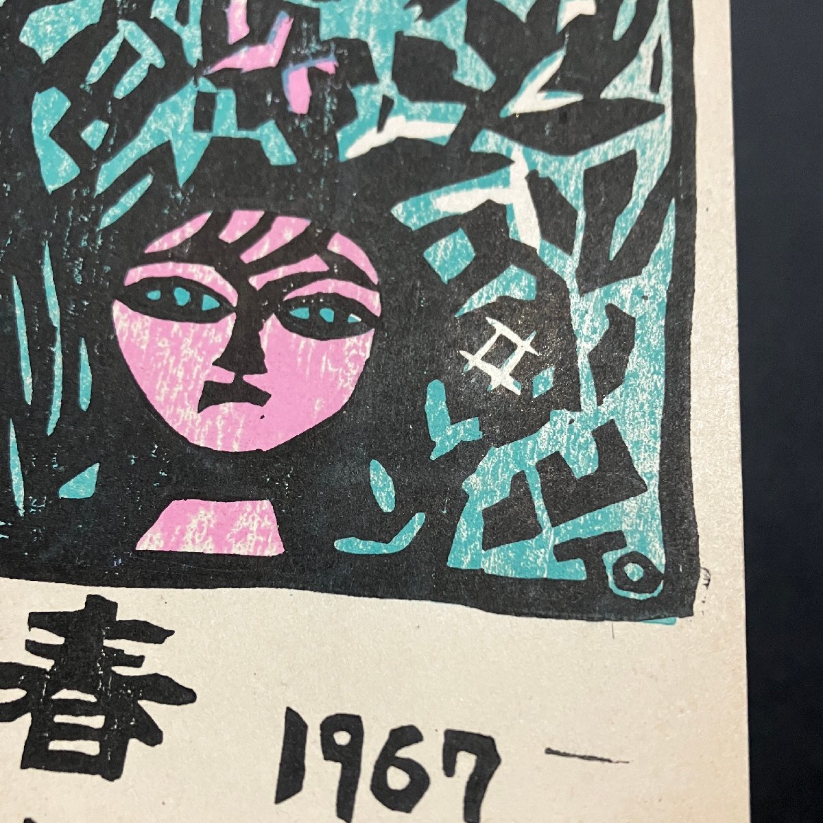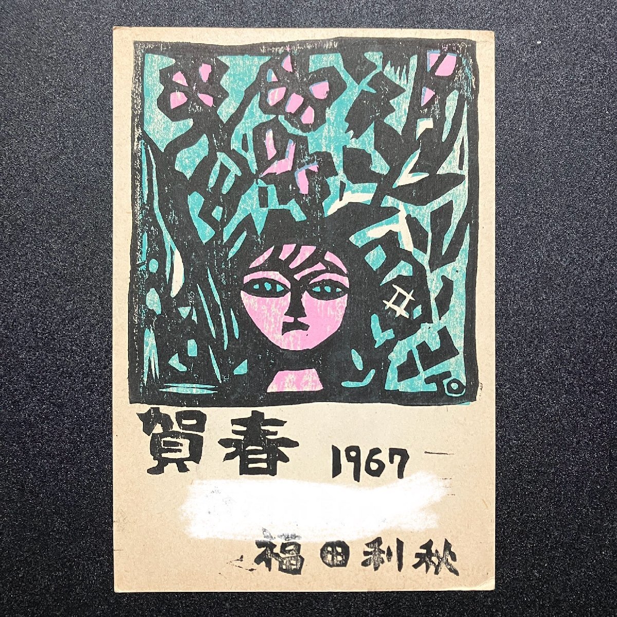 福田利秋 木版画年賀状 1967年 多色刷り       絵葉書 絵はがき