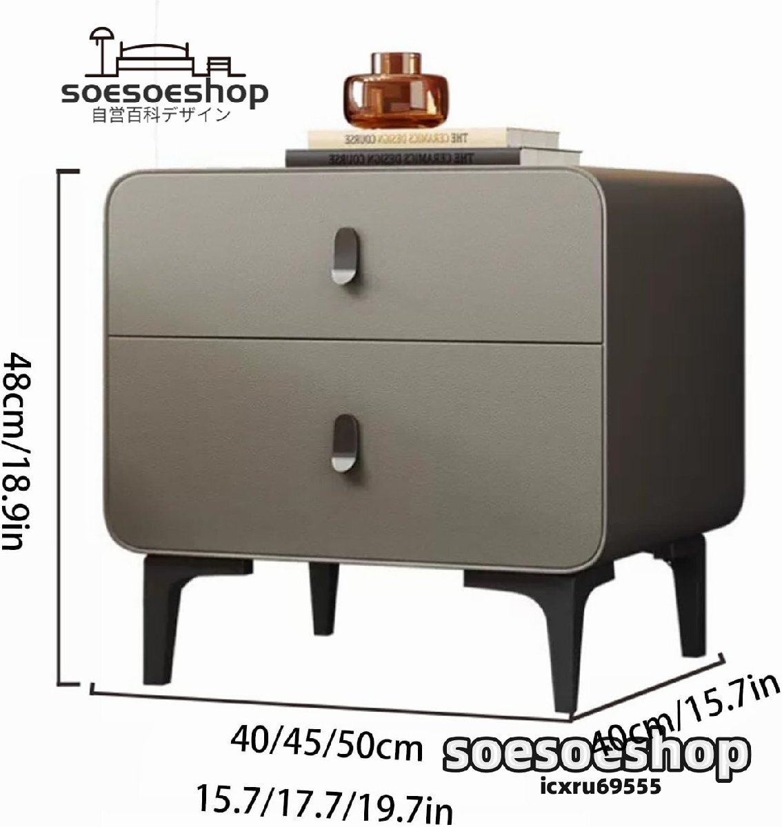 2つの引き出しを備え、小物や文房具を整理整頓するのに便利です。また、ベッドサイドの収納チェストとしても使えるので、寝室のスペースを有効活用できます。