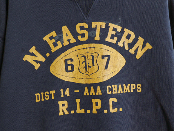 人気ブランド POLO RALPH LAUREN のプリントスウェットパーカーです。 素材は、87% COTTON:13% POLYESTER しっかりとした厚手のヘビーウェイト 着心地抜群の裏起毛スウェット素材を使用しています。 合わせやすい、ネイビー ボディ フロントに4段 アーチ フットボール 入りのビッグプリント フロッキープリントがはがれた様な手の込んだ ヴィンテージ加工されたプリントが施されています 嵌め込みタイプのVガゼット フラットシーマ縫製、ポケットのステッチなど 50年代頃のヴィンテージパーカーをサンプリングした リアルヴィンテージのアーカイブを多数所有する ラルフローレンらしい細部までこだわった ヴィンテージ モデルのグッドデザイン ゆったりとした、人気のシルエット 幅広い季節に活躍する これだけで様になる商品です。 |