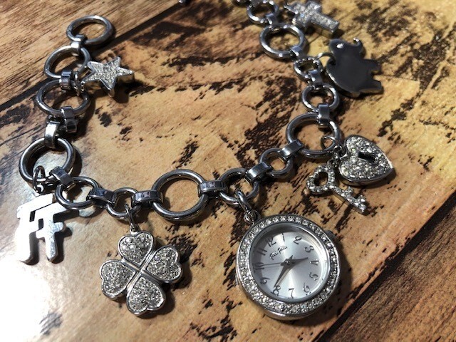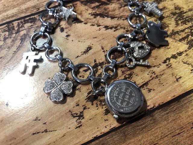 BK0231 良好 FOLLI FOLLIE フォリフォリ ブレスレットデザイン 腕時計 チャーム付 チェーン WF5T072ZPS クオーツ レディース