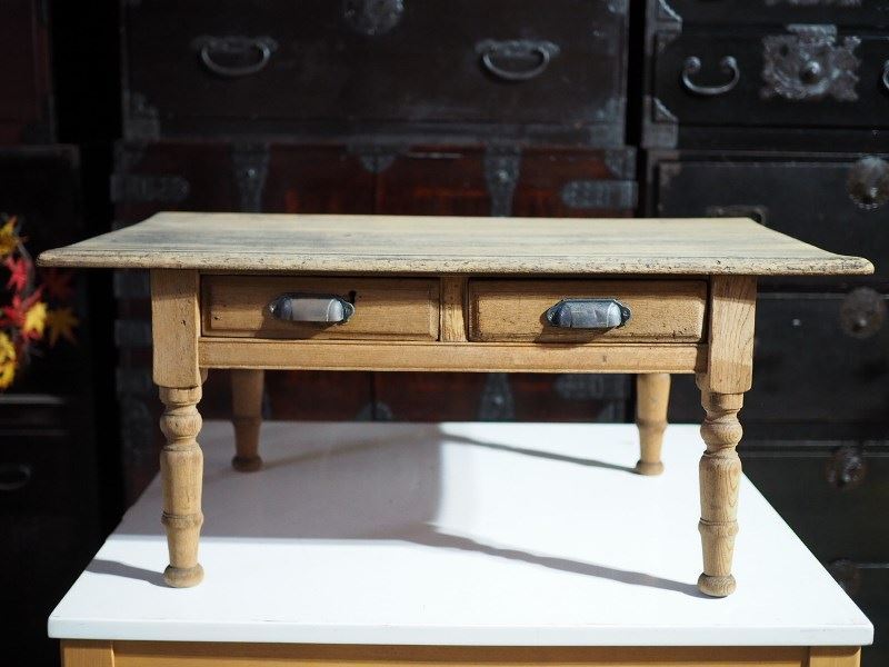 | ろくろ脚デザインのアンティーク文机 昭和初期 古録展 送料別 Gサイズ 中古 品番F4286 | |