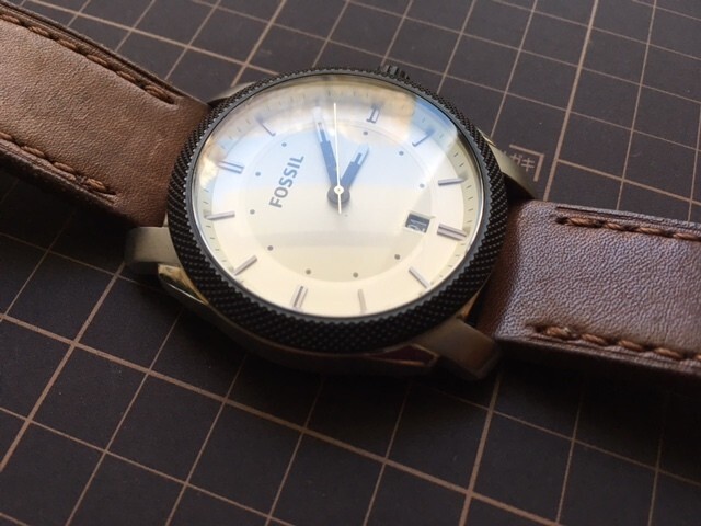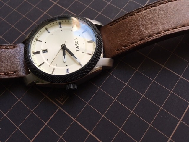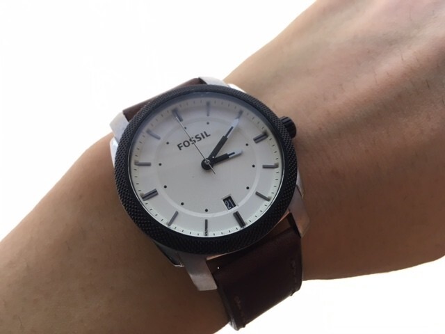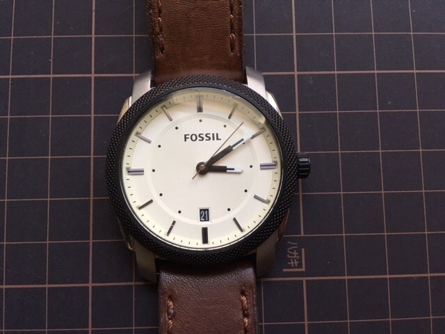程度良好 FOSSIL フォッシル デイト FS4836 オフホワイト・アイボリー系文字盤 純正革ベルト クオーツ メンズ 腕時計