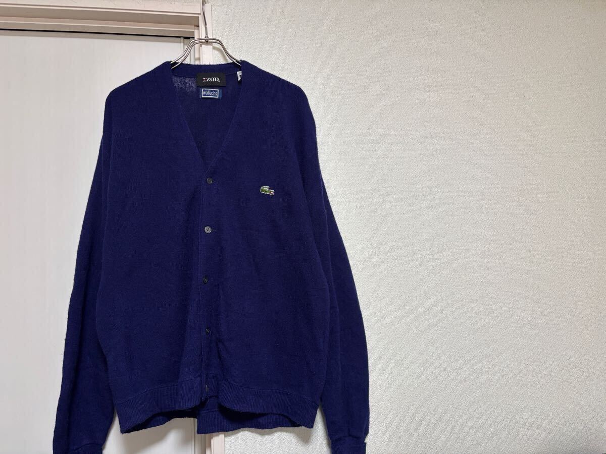 90sヴィンテージアイゾットラコステの無地ネイビーカーディガンです。