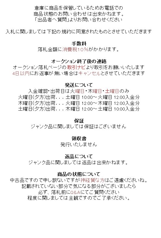 Ⅵ.弃标也必须全额支付该拍品(成交价+消费税+银行转账费+日本邮费+代购费)。